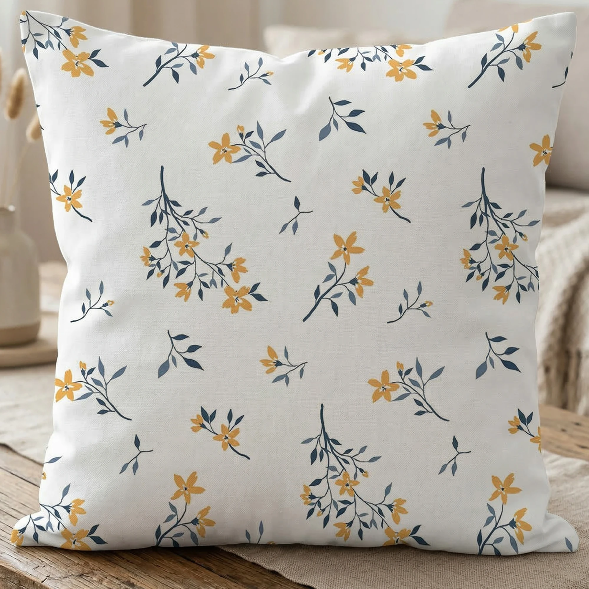 Uzupelnij swoją pościel i wprowadź do sypialni radosny powiew natury dzięki poszewce na poduszkę 40x40 z kolekcji "Miodowa Delikatność" 🌸. Ten popularny rozmiar, często nazywany "jaśkiem", idealnie sprawdzi się jako dodatkowa poduszka ozdobna na łóżku lub kanapie. Subtelny, drobnokwiatowy motyw miodowo-żółtych kwiatuszków na tle szaro-niebieskich gałązek 🌿 perfekcyjnie koresponduje z naszymi kompletami pościeli, tworząc spójną i jasną aranżację wnętrza 🌙. To także wspaniały pomysł na gustowny i praktyczny prezent!
