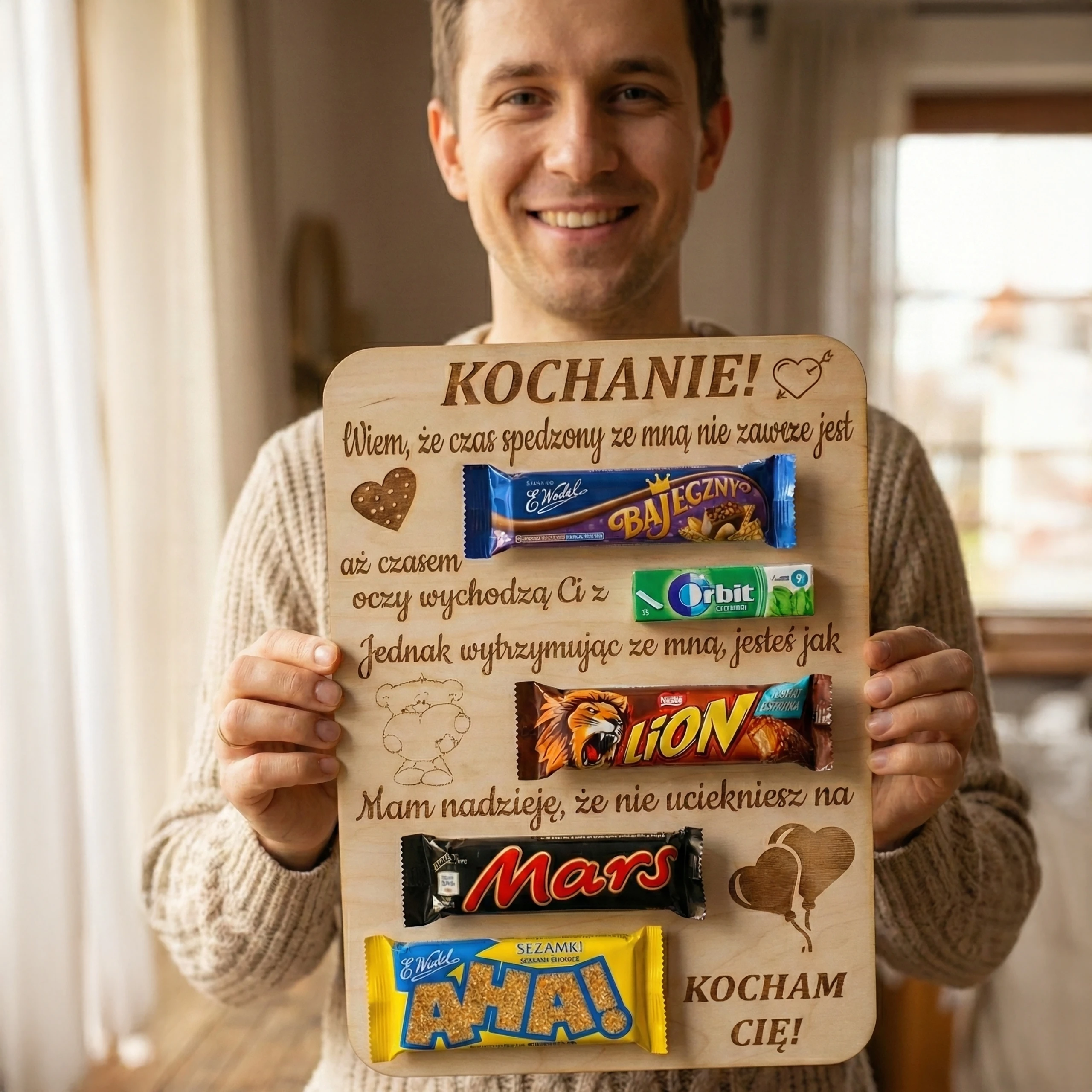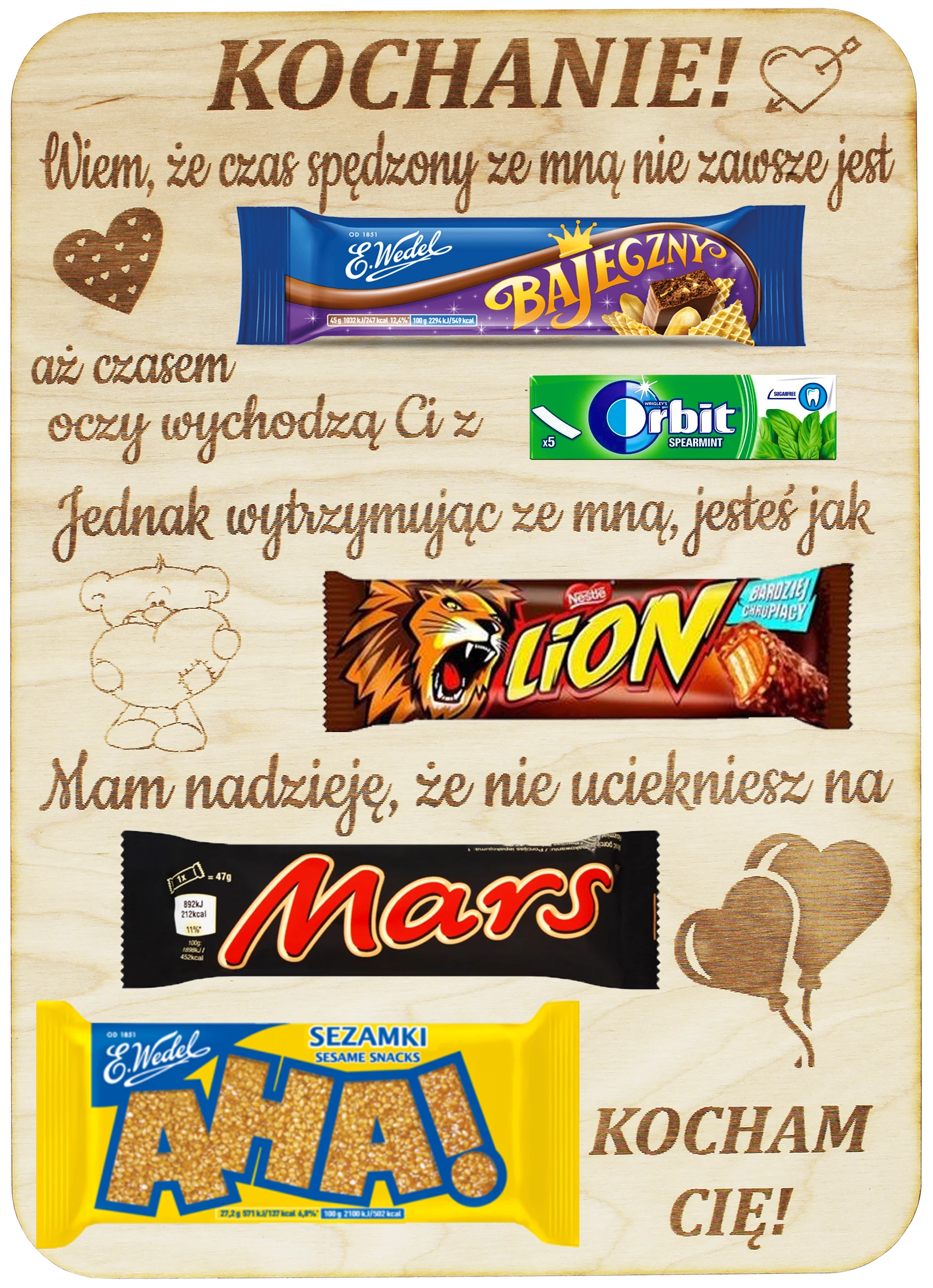 Ta tabliczka ze słodyczami wykonana ze sklejki brzozowej to idealny wybór na wyjątkowy upominek, który mówi więcej niż słowa ❤️✨