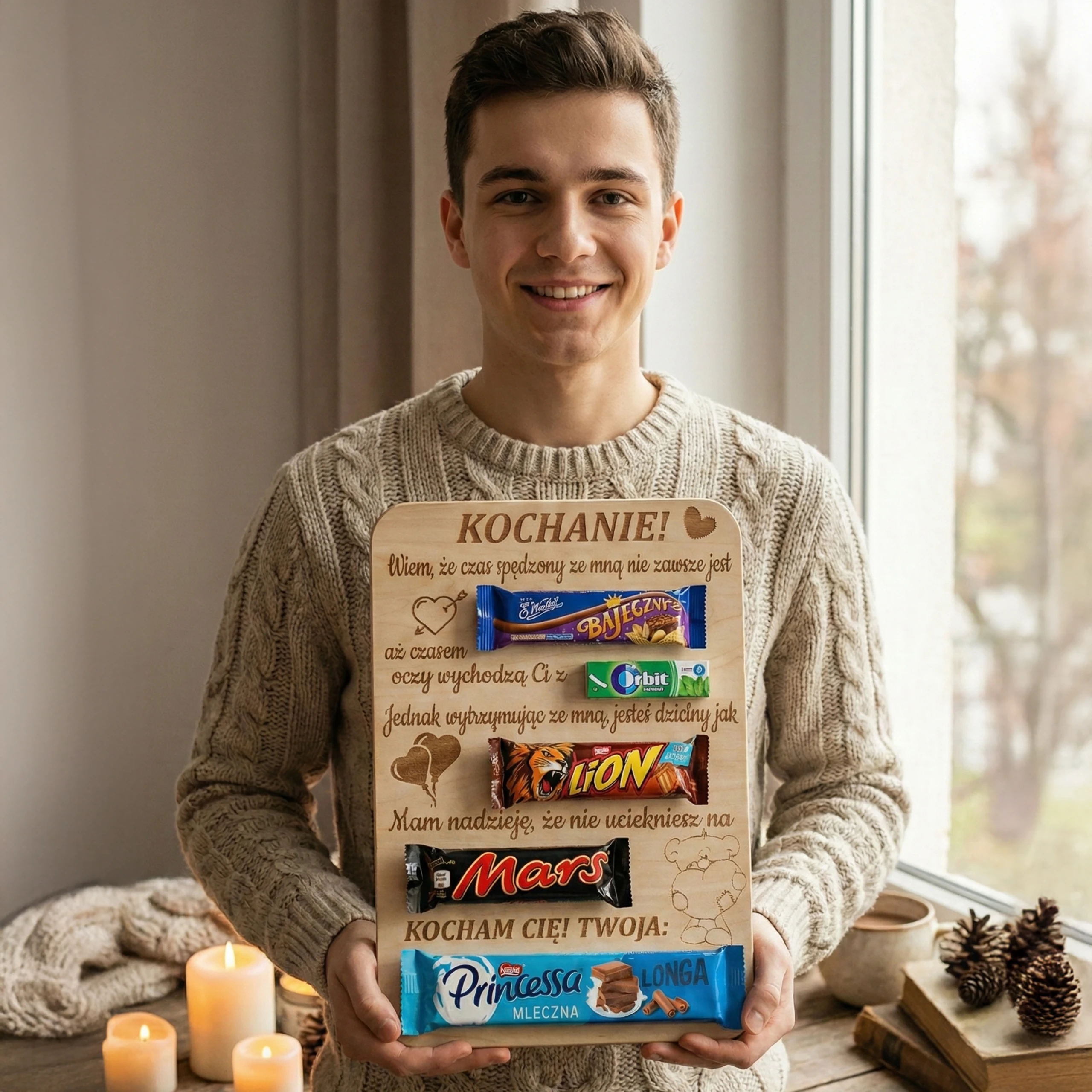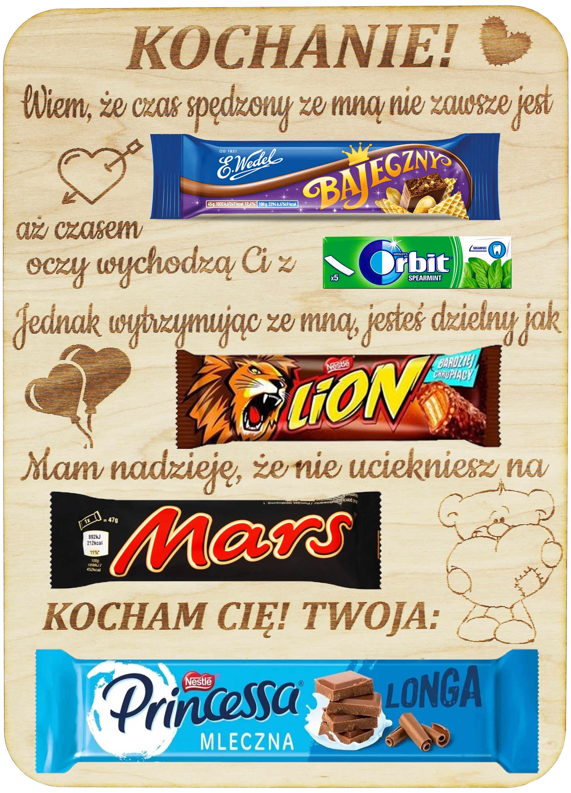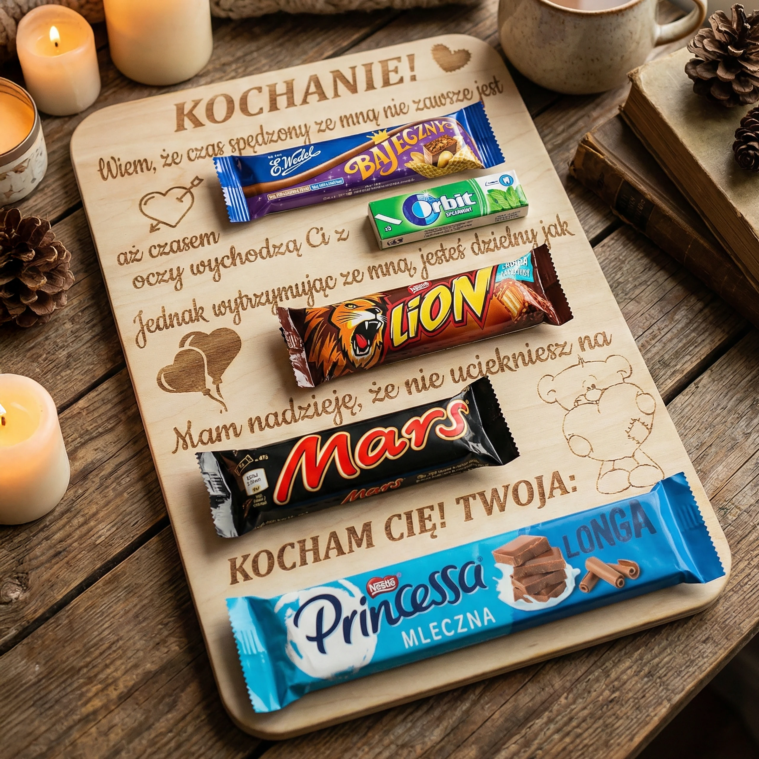 Ta tabliczka ze słodyczami wykonana ze sklejki brzozowej to idealny wybór na wyjątkowy upominek, który mówi więcej niż słowa ❤️✨