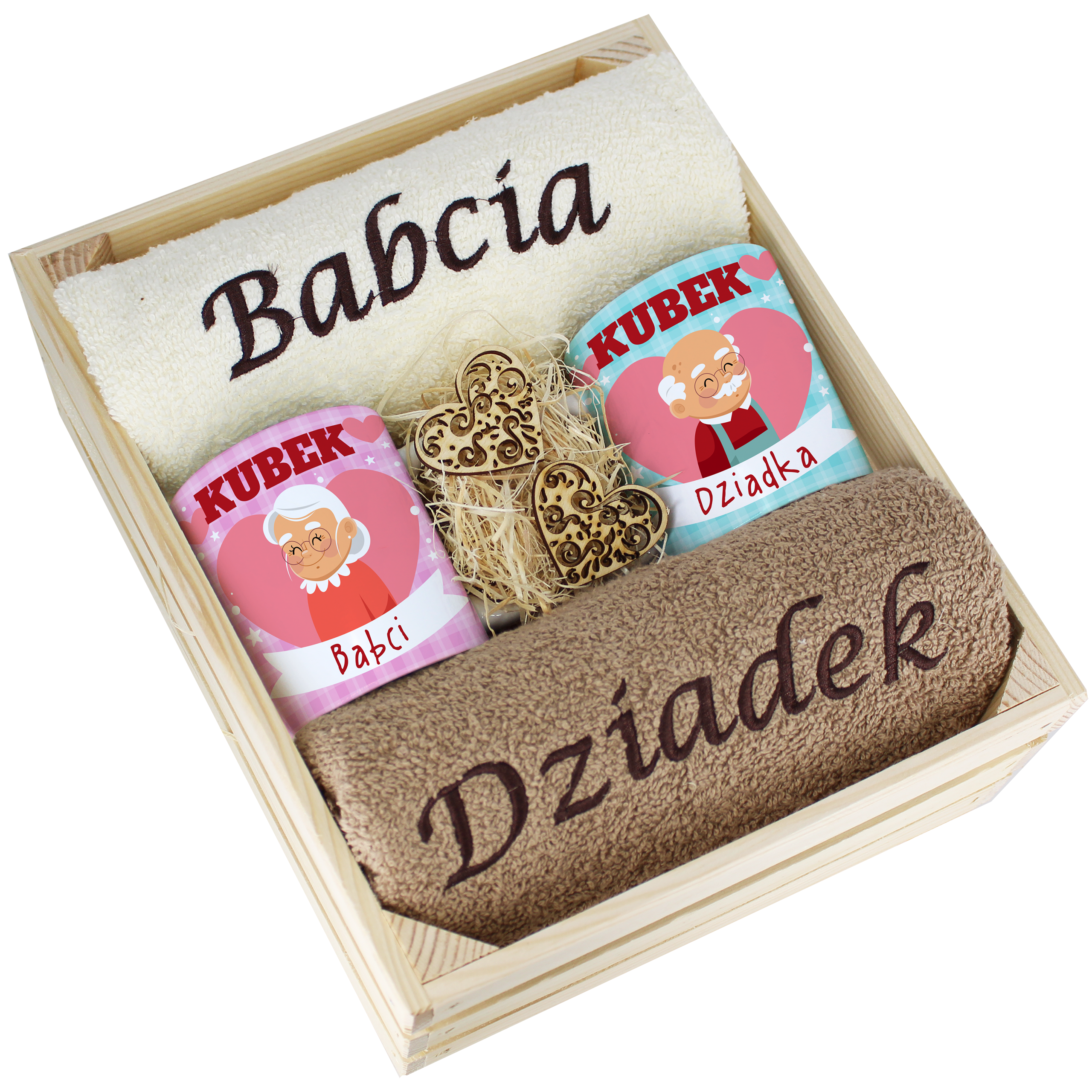 Każdy zestaw ręczników wraz z kubkami jest zapakowany w folię - celofan - zestaw tworzy gotowy prezent do podarowania bez potrzeby dalszego pakowania.