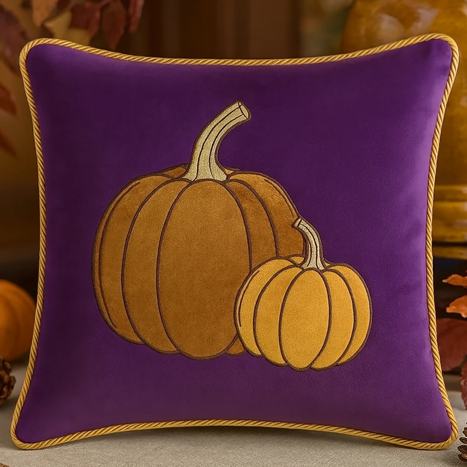 🎃 Jesienna poszewka dekoracyjna 40 × 40 cm z aplikacją i haftem to wyjątkowy, ręcznie wykonany dodatek klasy premium, który wniesie do Twojego domu ciepło, elegancję i przytulny klimat jesieni.