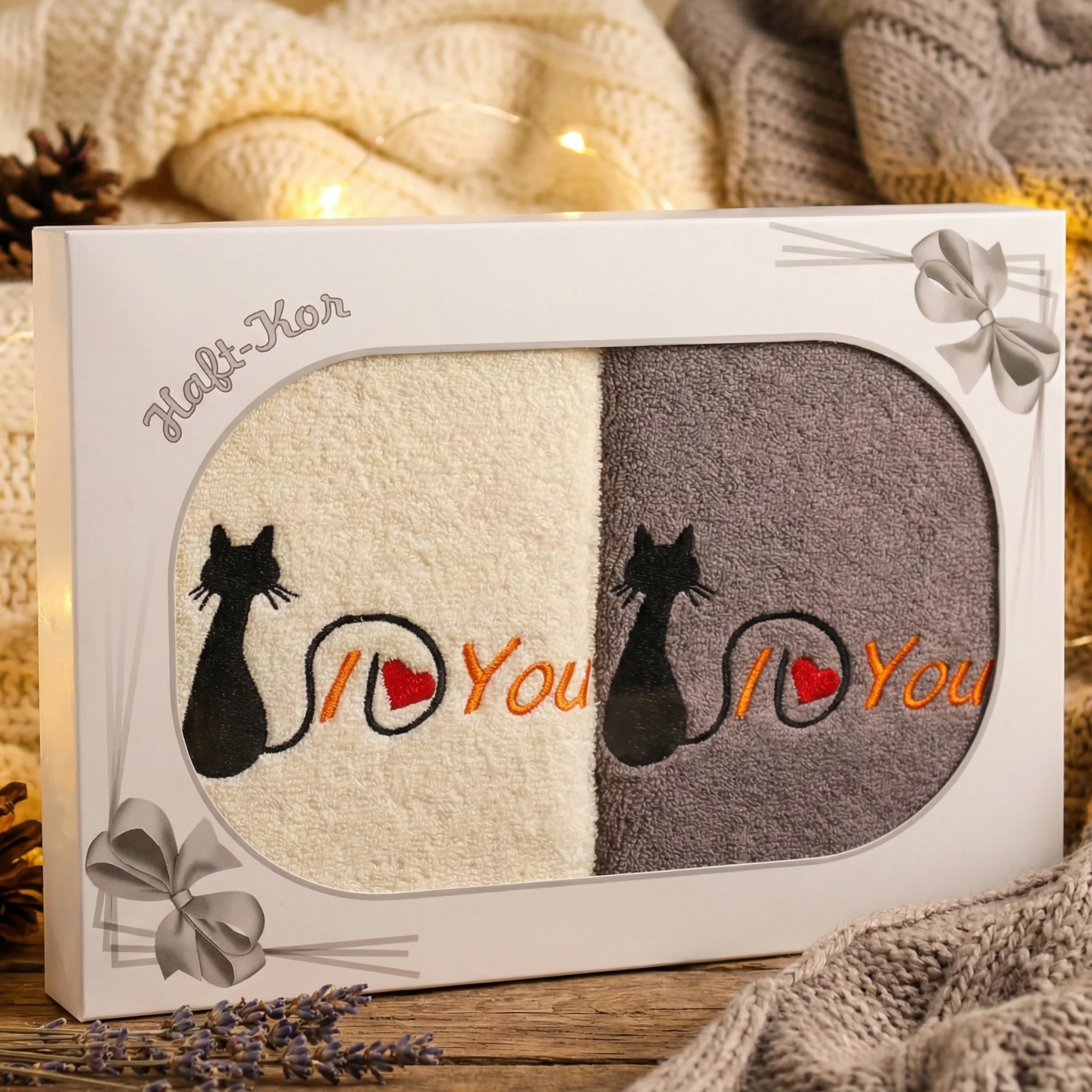 Ten komplet ręczników z haftem „Kocham Cię” to idealny pomysł na upominek, który każdego dnia przypomina o bliskiej osobie ❤️✨