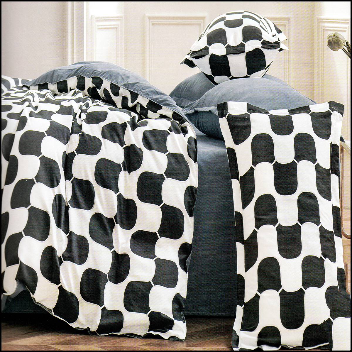 Komplet pościeli wyprodukowany jest z wysokogatunkowej 100% Bawełny. Pościel ta jest bardzo miękka, delikatna, trwała, oraz starannie uszyta co zapewni długi okres użytkowania. Nowoczesne wzornictwo oraz wysoka jakość gwarantuje zadowolenie użytkownika, a dzięki eleganckiemu opakowaniu idealnie nadaje się na prezent. Materiał pościeli w dotyku jest bardzo miły i delikatny, zapewnia odpowiedni komfort podczas snu.