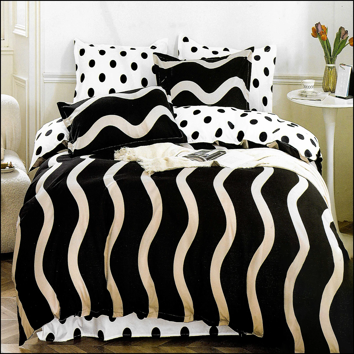Komplet pościeli wyprodukowany jest z wysokogatunkowej bawełny. Pościel ta jest bardzo miękka, delikatna, trwała, delikatnie błyszcząca,oraz starannie uszyta co zapewni długi okres użytkowania. Nowoczesne wzornictwo oraz wysoka jakość gwarantuje zadowolenie użytkownika, a dzięki eleganckiemu opakowaniu idealnie nadaje się na prezent. Materiał pościeli w dotyku jest bardzo miły i delikatny, zapewnia odpowiedni komfort podczas snu.