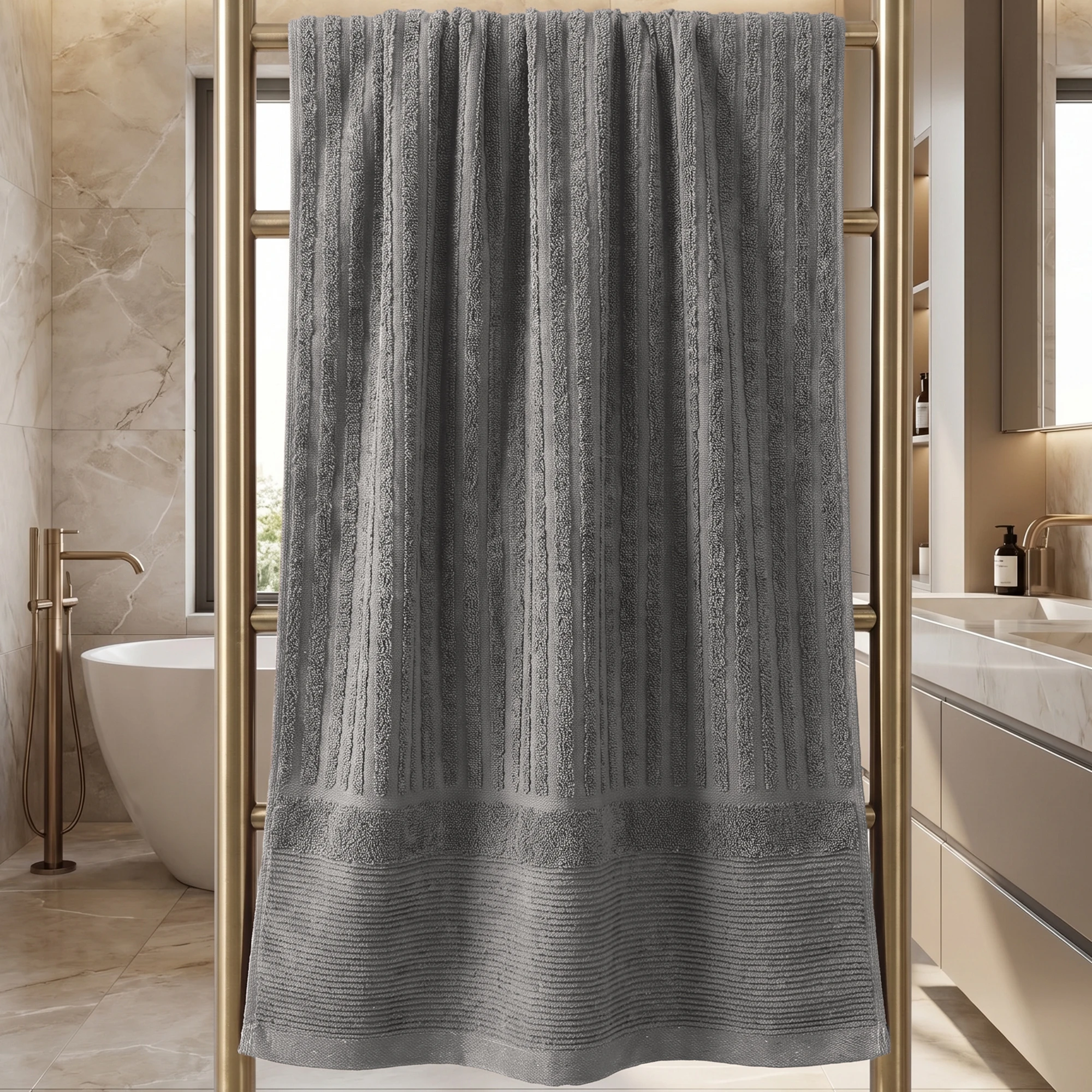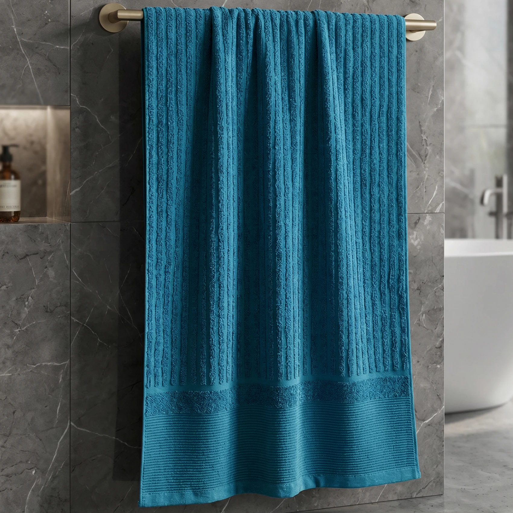 Czy ręczniki 50x100 cm z prążkami nadają się do osuszania włosów? ✔️ Tak! Ten rozmiar świetnie sprawdza się jako turban. Prążkowana struktura zbiera nadmiar wody szybciej niż gładka bawełna, a ręcznik nie obciąża głowy.