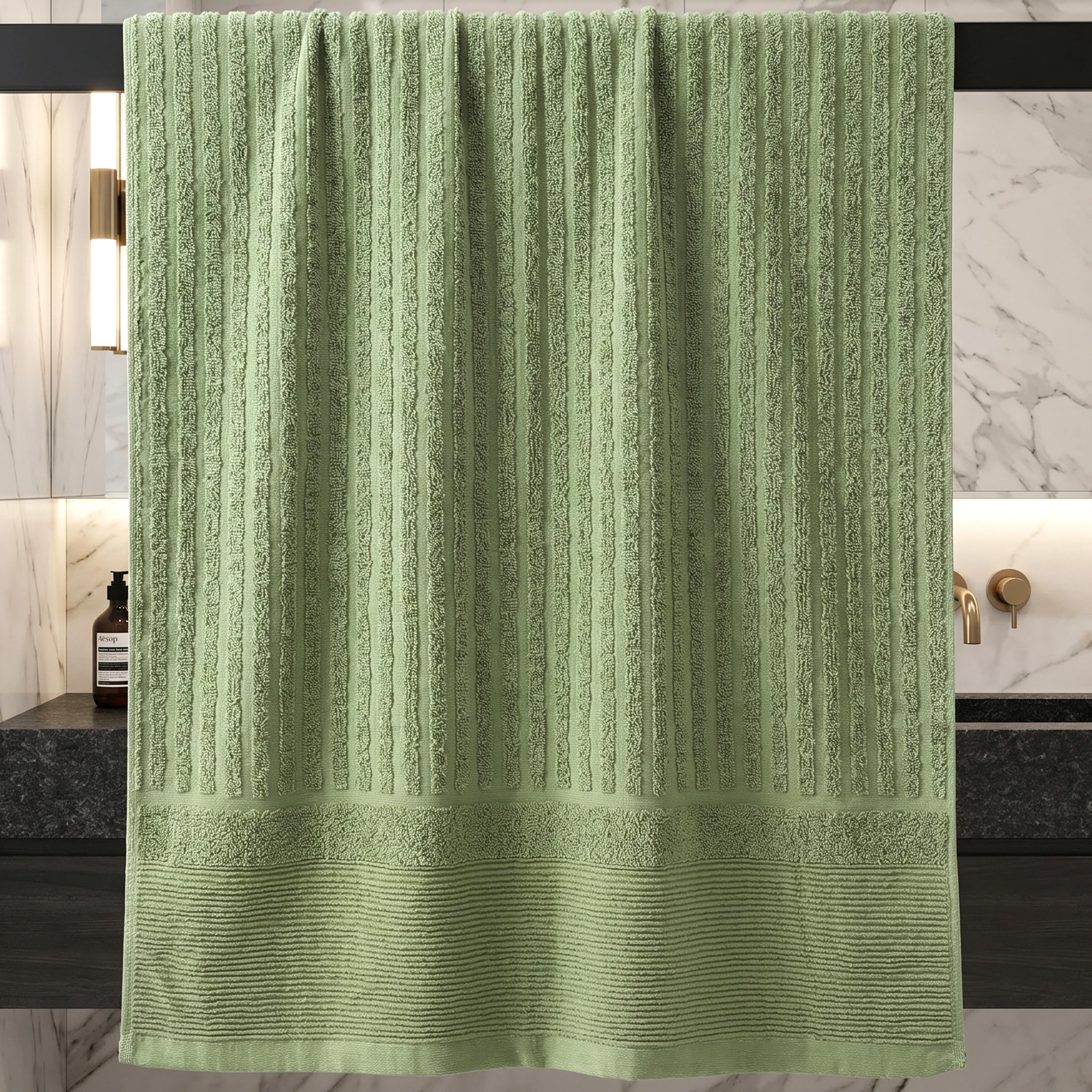 Dlaczego prążkowana struktura jest lepsza przy umywalce? ✔️ Ręczniki do rąk bywają często wilgotne. Rowki w strukturze ręczników ARIA działają jak kanały wentylacyjne, co znacznie przyspiesza ich wysychanie na wieszaku i pomaga zachować świeżość na dłużej.