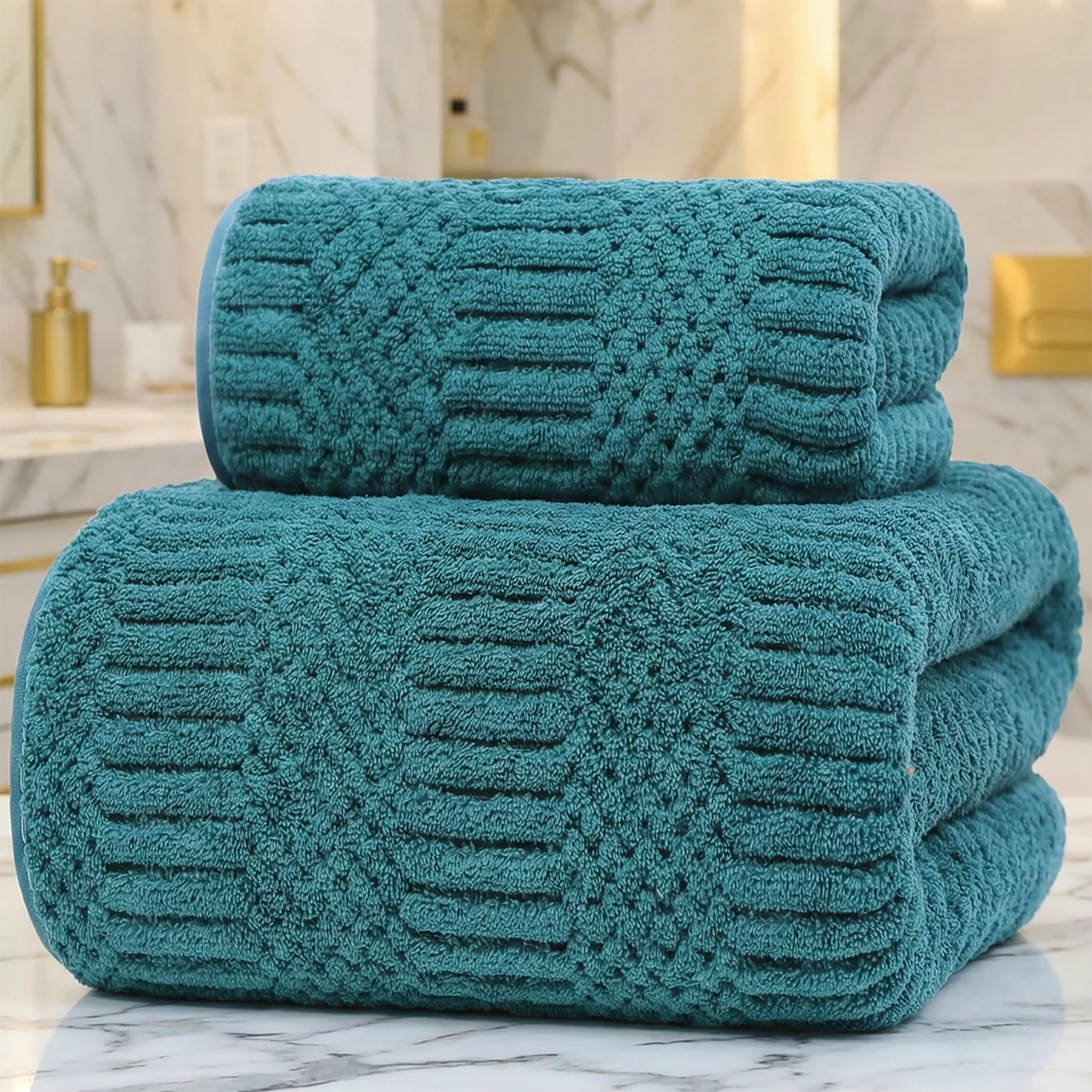 🌟 Praktyczny zestaw 2 sztuk – duży ręcznik kąpielowy + mniejszy do rąk lub twarzy.