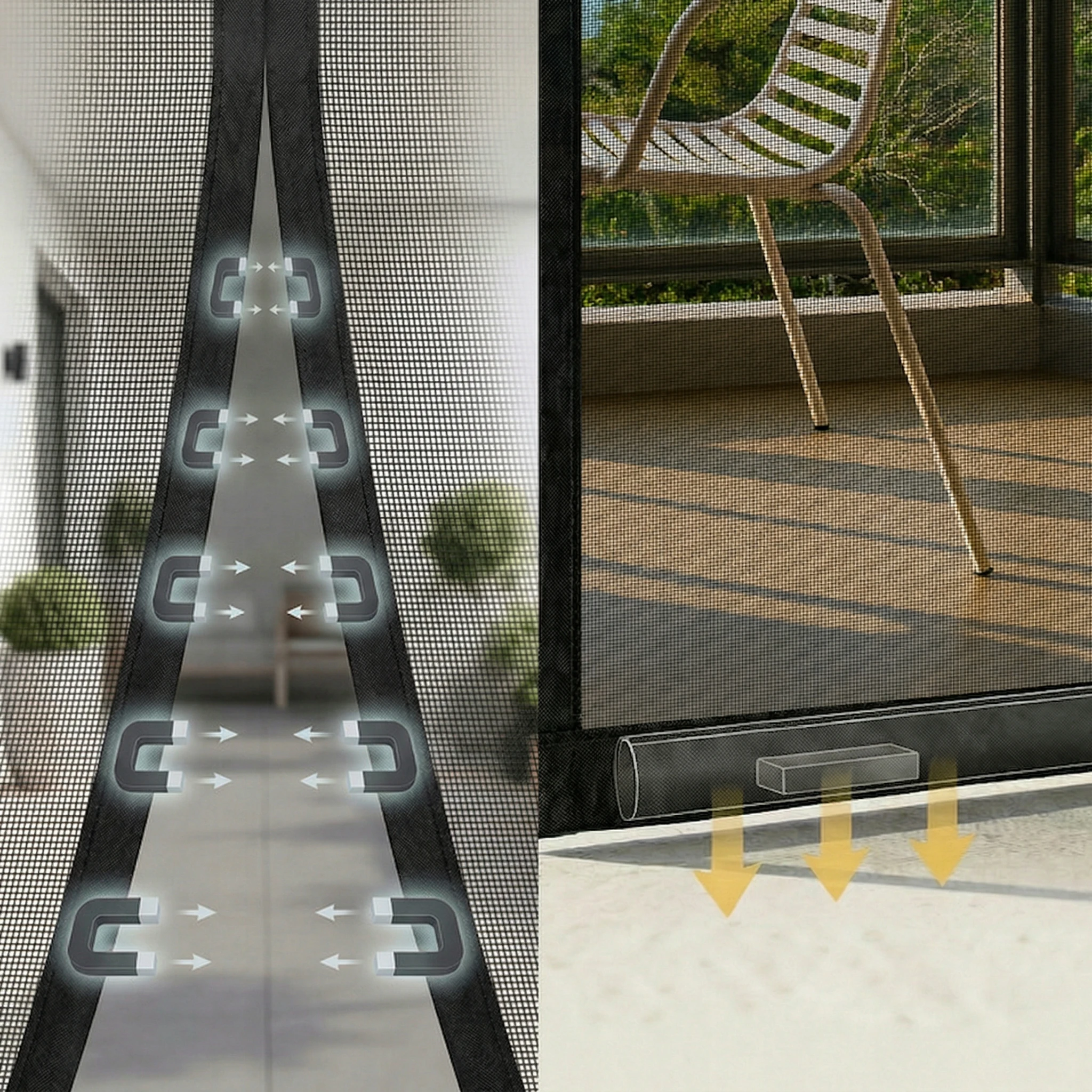 ✅ Samoczynne, magnetyczne zamykanie 🧲 – aż 20 wbudowanych, mocnych magnesów błyskawicznie i szczelnie zamyka siatkę po każdym przejściu. Nie musisz pamiętać o jej zasuwaniu!