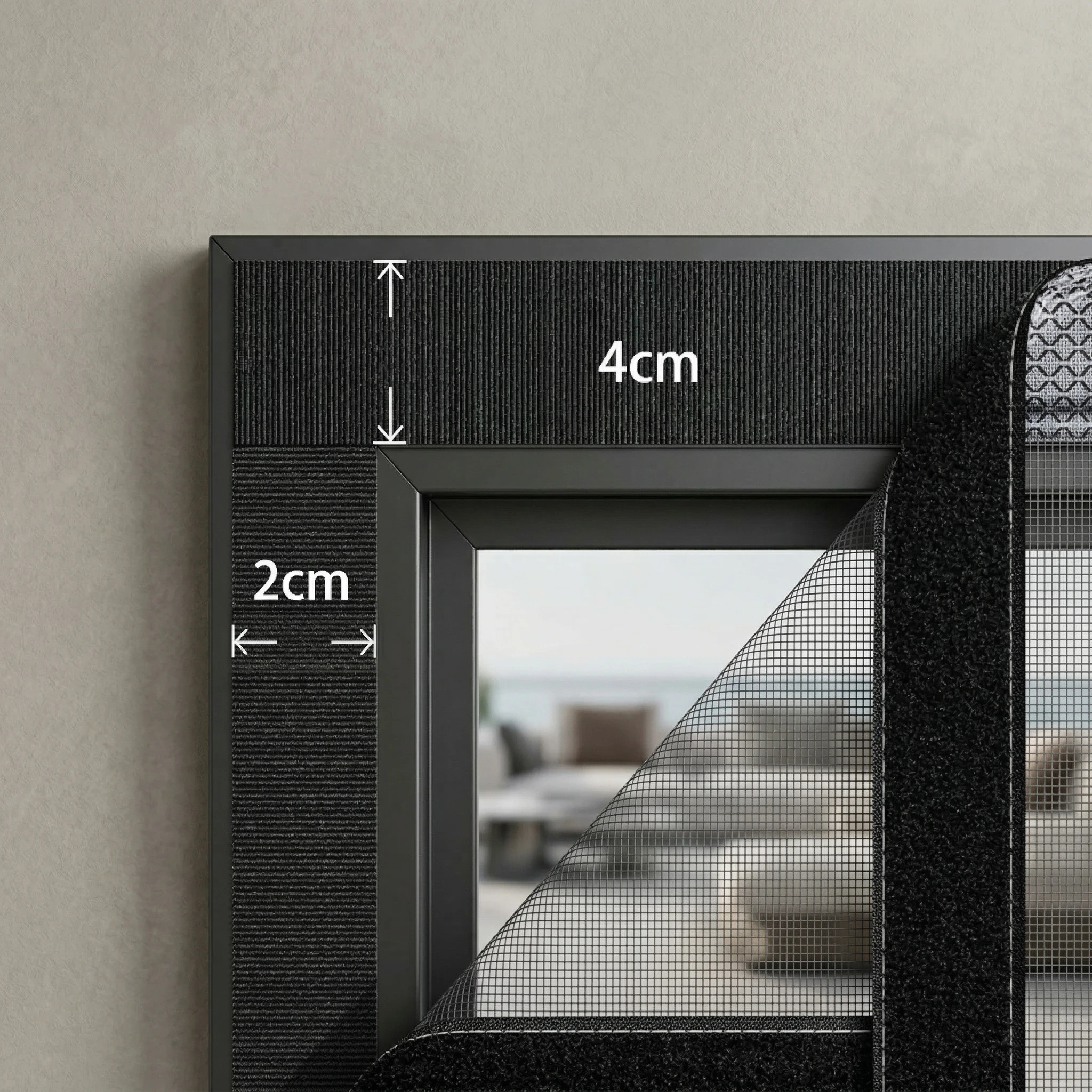 3. Czy taśma z rzepem dobrze trzyma się futryny? ✔️ Tak. Dołączone taśmy montażowe posiadają bardzo mocny klej, który zapewnia równomierne i potężne przyleganie. Szerszy rzep (4 cm) przeznaczony na górną krawędź bez problemu utrzymuje ciężar całej siatki i magnesów.