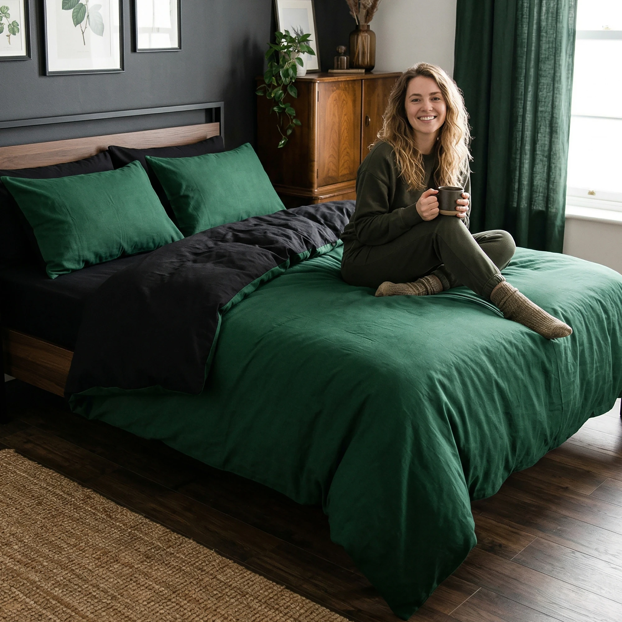 Wprowadź do swojej sypialni powiew minimalistycznego luksusu z naszą najnowszą dwustronną kolekcją "Leśna Noc" 🌲. Ta pościel to mistrzowskie połączenie dwóch najmodniejszych odcieni: nasyconej, głębokiej butelkowej zieleni oraz klasycznej, matowej czerni 🖤. Wykonana z najwyższej jakości bawełny premium, zachwyca jedwabistą gładkością i miękkością, co doskonale oddają nasze zdjęcia. Wybierz tę nowoczesną i wyrafinowaną propozycję od marki J&W, by stworzyć w swojej sypialni prawdziwą oazę spokoju i stylu 🌙. Luksusowa, dwustronna pościel J&W to także doskonały pomysł na gustowny prezent na parapetówkę, ślub lub rocznicę 🎁.