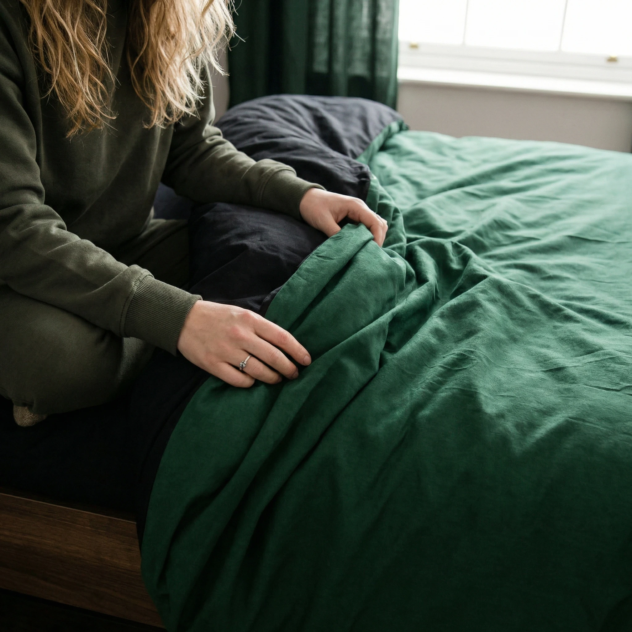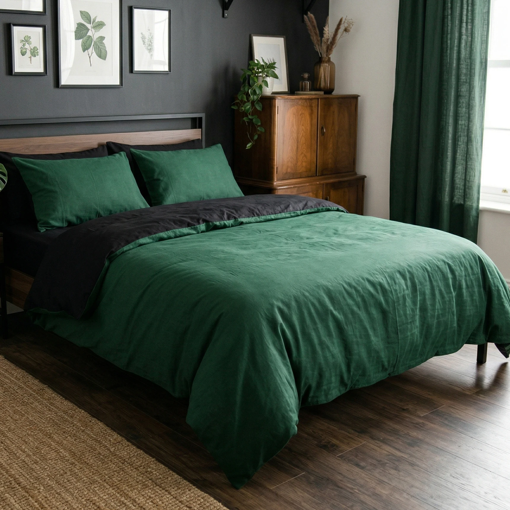 Pokochaj luksus dwukolorowej pościeli na dłużej! Aby zapewnić spójny i elegancki wygląd sypialni, w naszym sklepie z łatwością dobierzesz do tego kompletu dodatkowe poszewki na poduszki 70x80 cm w jednym z pasujących odcieni: butelkowej zieleni lub głębokiej czerni. Oferujemy również szeroki wybór ekskluzywnych prześcieradeł z gumką, idealnie pasujących do nowoczesnej kolekcji "Leśna Noc".