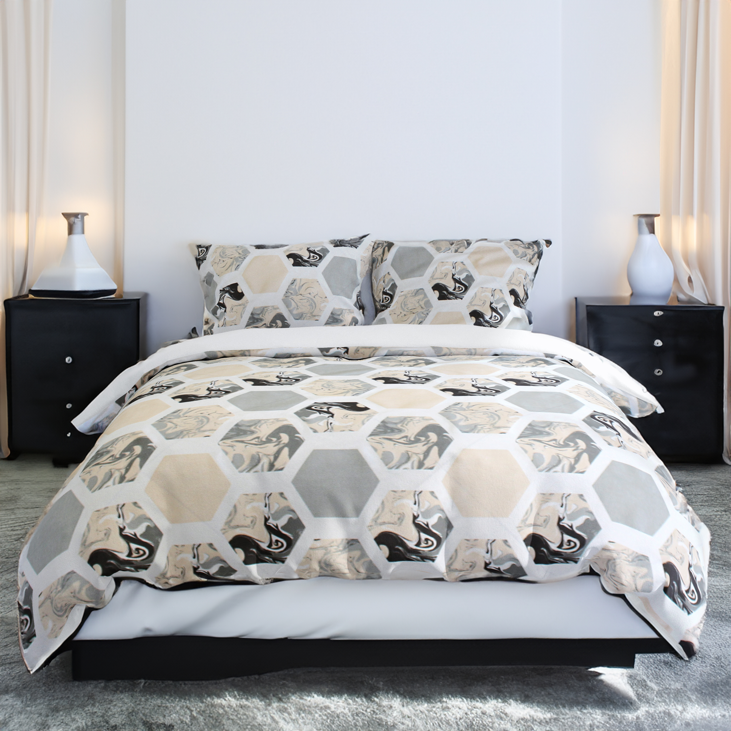 Komplet pościeli wyprodukowany jest z wysokogatunkowej satyny bawełnianej. Pościel ta jest bardzo miękka, delikatna, trwała, delikatnie błyszcząca,oraz starannie uszyta co zapewni długi okres użytkowania. Nowoczesne wzornictwo oraz wysoka jakość gwarantuje zadowolenie użytkownika, a dzięki eleganckiemu opakowaniu idealnie nadaje się na prezent. Materiał pościeli w dotyku jest bardzo miły i delikatny, zapewnia odpowiedni komfort podczas snu.