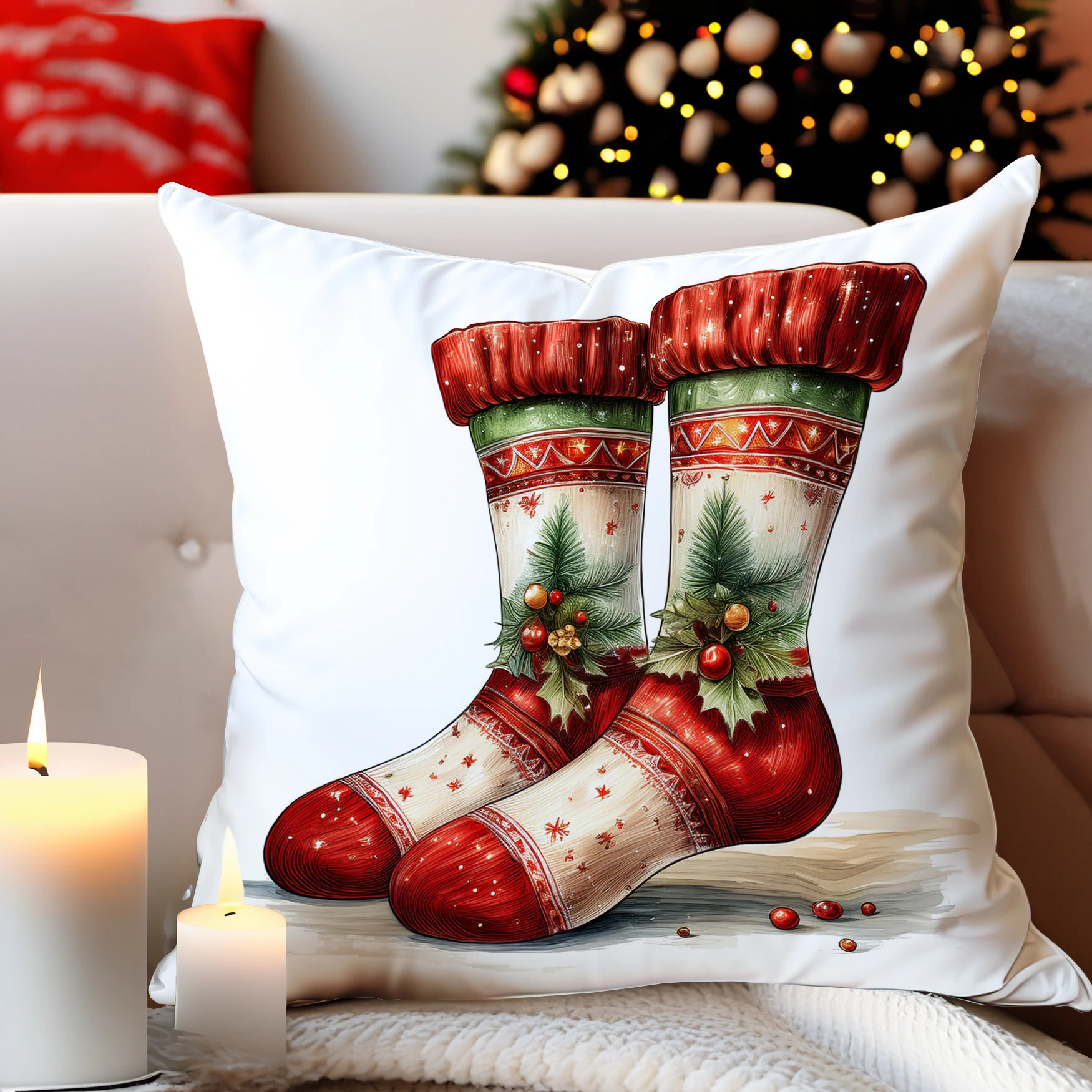 Świąteczny nadruk wykonany metodą sublimacji gwarantuje intensywne kolory i perfekcyjną jakość detali 🎁✨ Wzór nie blaknie nawet po wielu praniach, dzięki czemu poszewka będzie ozdobą Twojego wnętrza przez kolejne sezony.