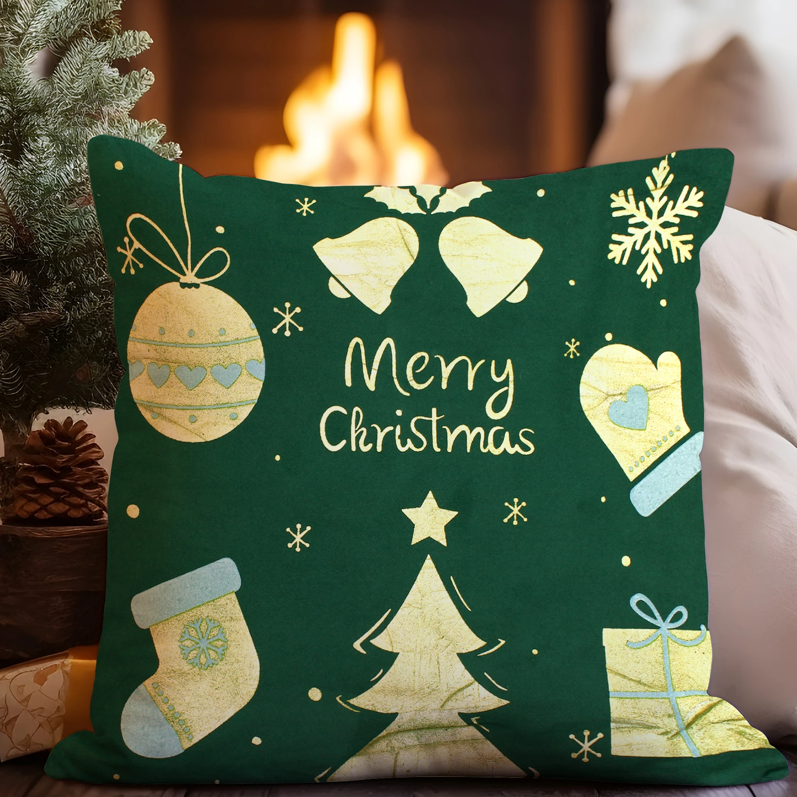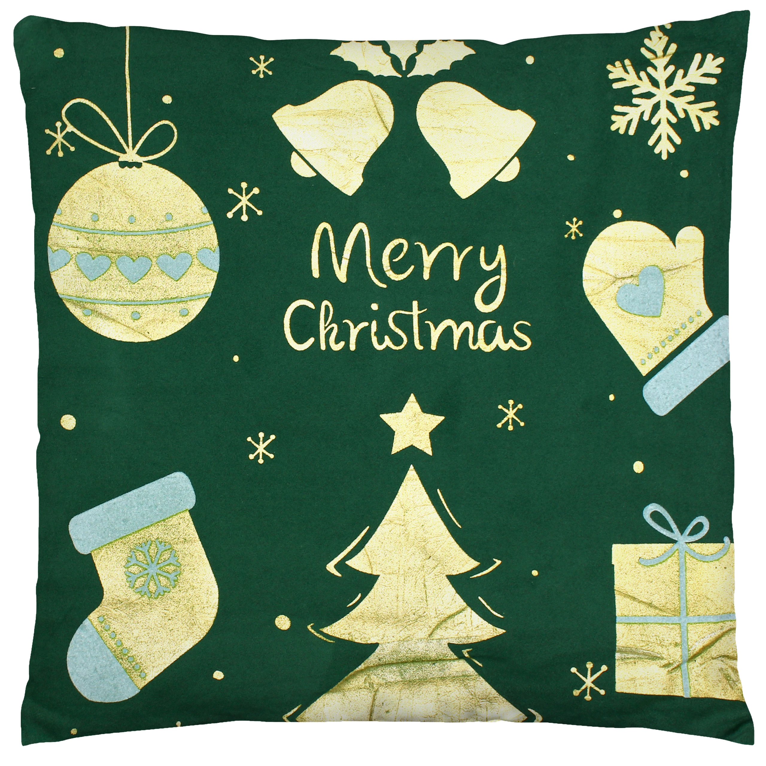 Welurowa poszewka świąteczna 40x40 centymetrów ze złotym, błyszczącym zadrukiem to eleganczna dekoracja, która odmieni każde wnętrze na czas świąt 🎅✨.