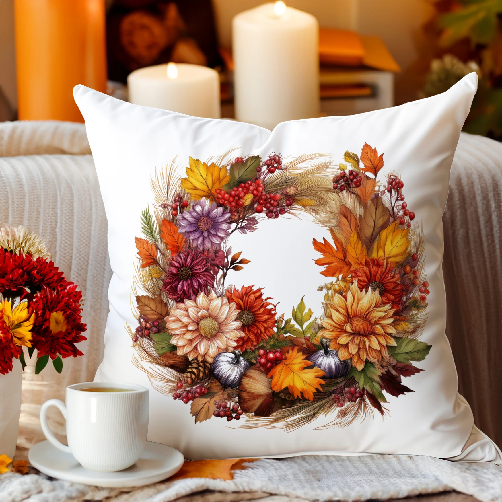 POSZEWKA DEKORACYJNA 50x70 JASIEK OZDOBNA JESIENNA JESIENNE KWIATY WIENIEC