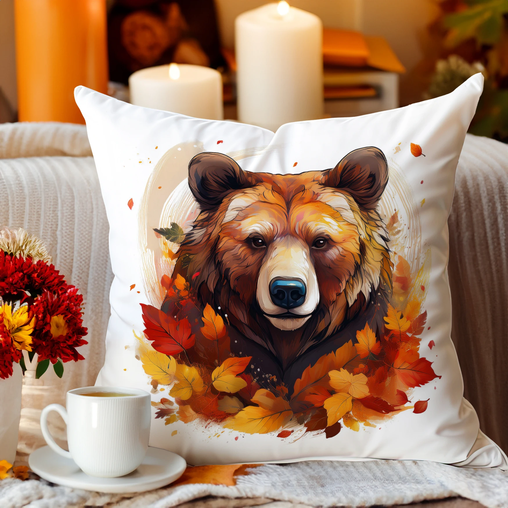 Ta poszewka dekoracyjna to idealny wybór na chłodniejsze dni – wprowadza do wnętrza 🍂 ciepło, 🍁 przytulność i 🌰 odrobinę natury. Doskonale sprawdzi się jako element jesiennego wystroju salonu, sypialni czy pokoju gościnnego.