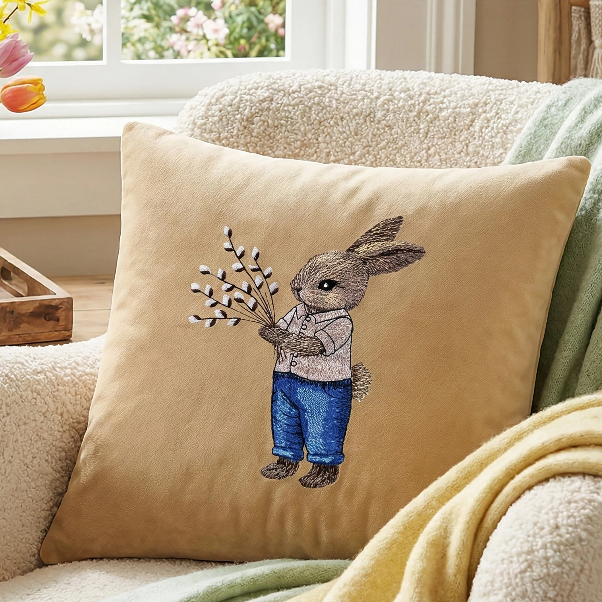 Nasza poszewka welurowa Premium 40x40 cm to elegancka dekoracja, która pięknie dopełni aranżację salonu, sypialni lub jadalni w okresie wiosennym i wielkanocnym 🐰🌿