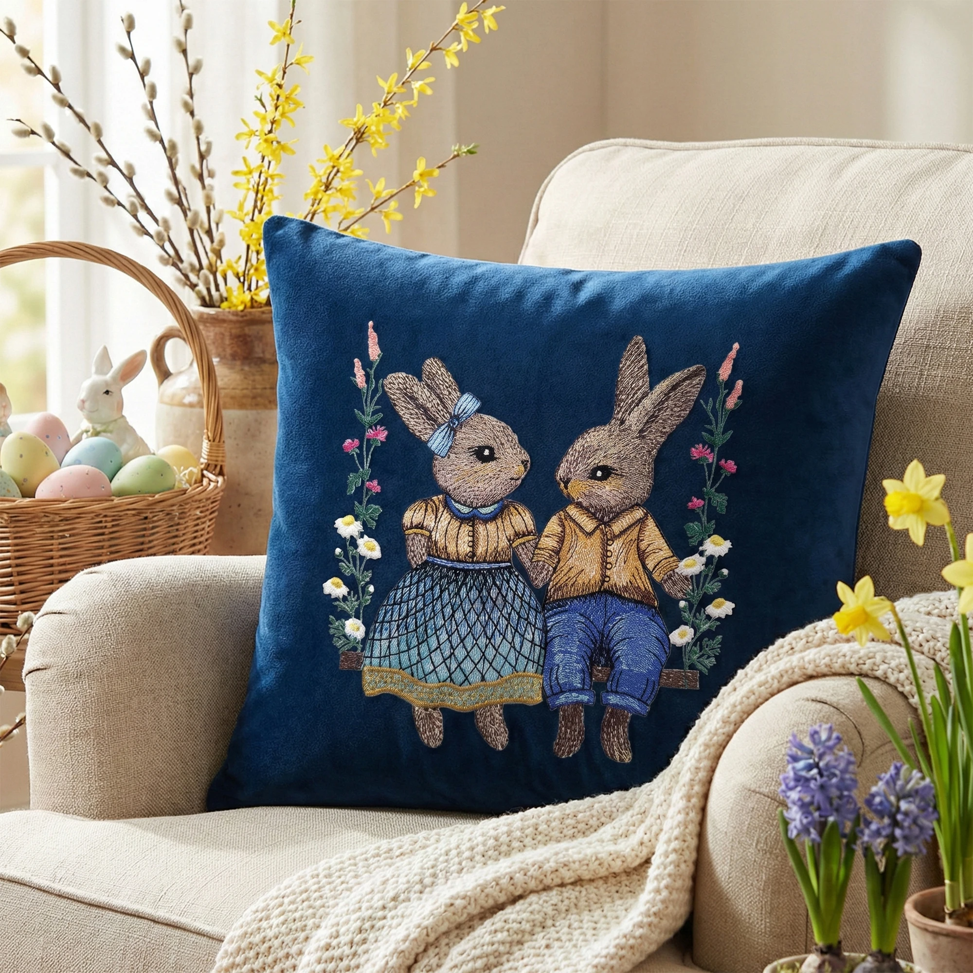 Nasza poszewka welurowa Premium 40x40 cm to elegancka dekoracja, która pięknie dopełni aranżację salonu, sypialni lub jadalni w okresie wiosennym i wielkanocnym 🐰🌿