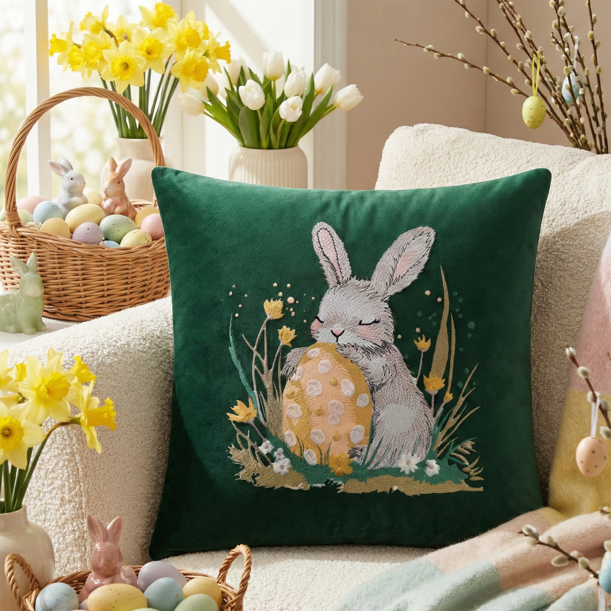 Nasza poszewka welurowa Premium 40x40 cm to elegancka dekoracja, która pięknie dopełni aranżację salonu, sypialni lub jadalni w okresie wiosennym i wielkanocnym 🐰🌿