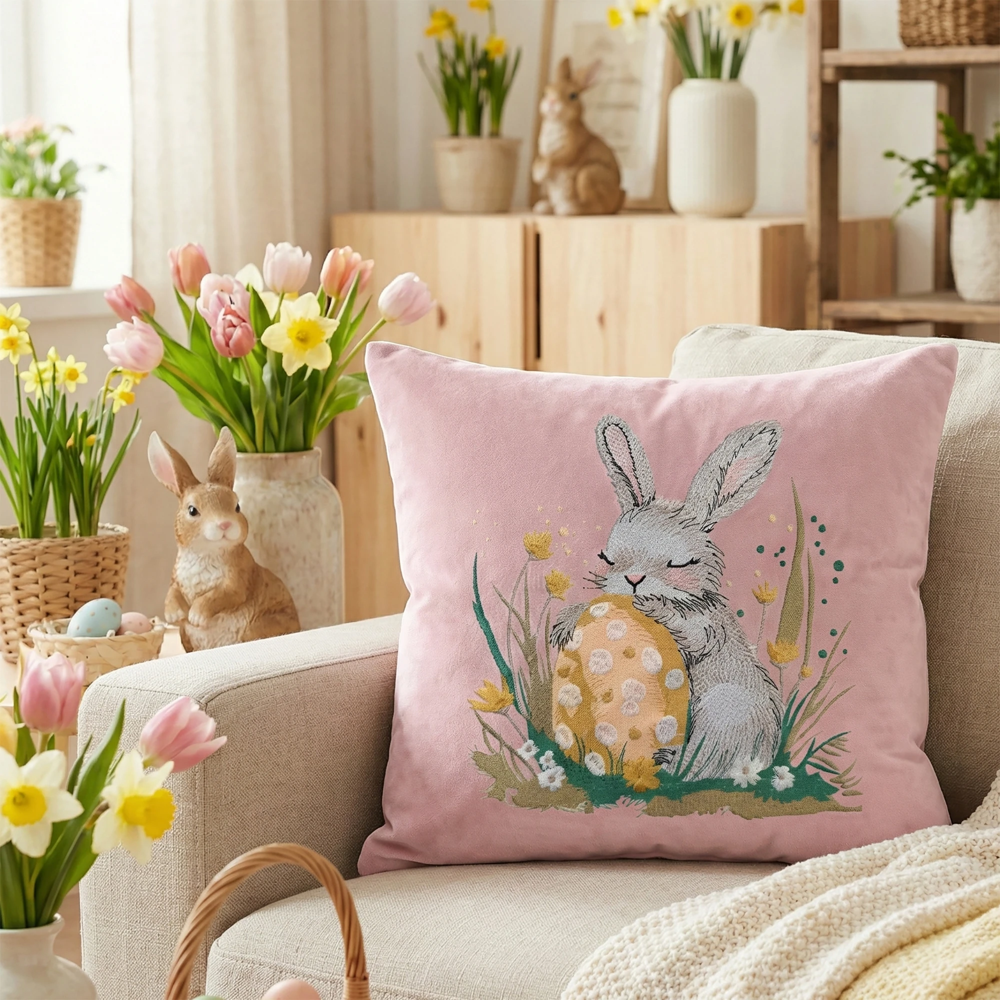 Nasza poszewka welurowa Premium 40x40 cm to elegancka dekoracja, która pięknie dopełni aranżację salonu, sypialni lub jadalni w okresie wiosennym i wielkanocnym 🐰🌿