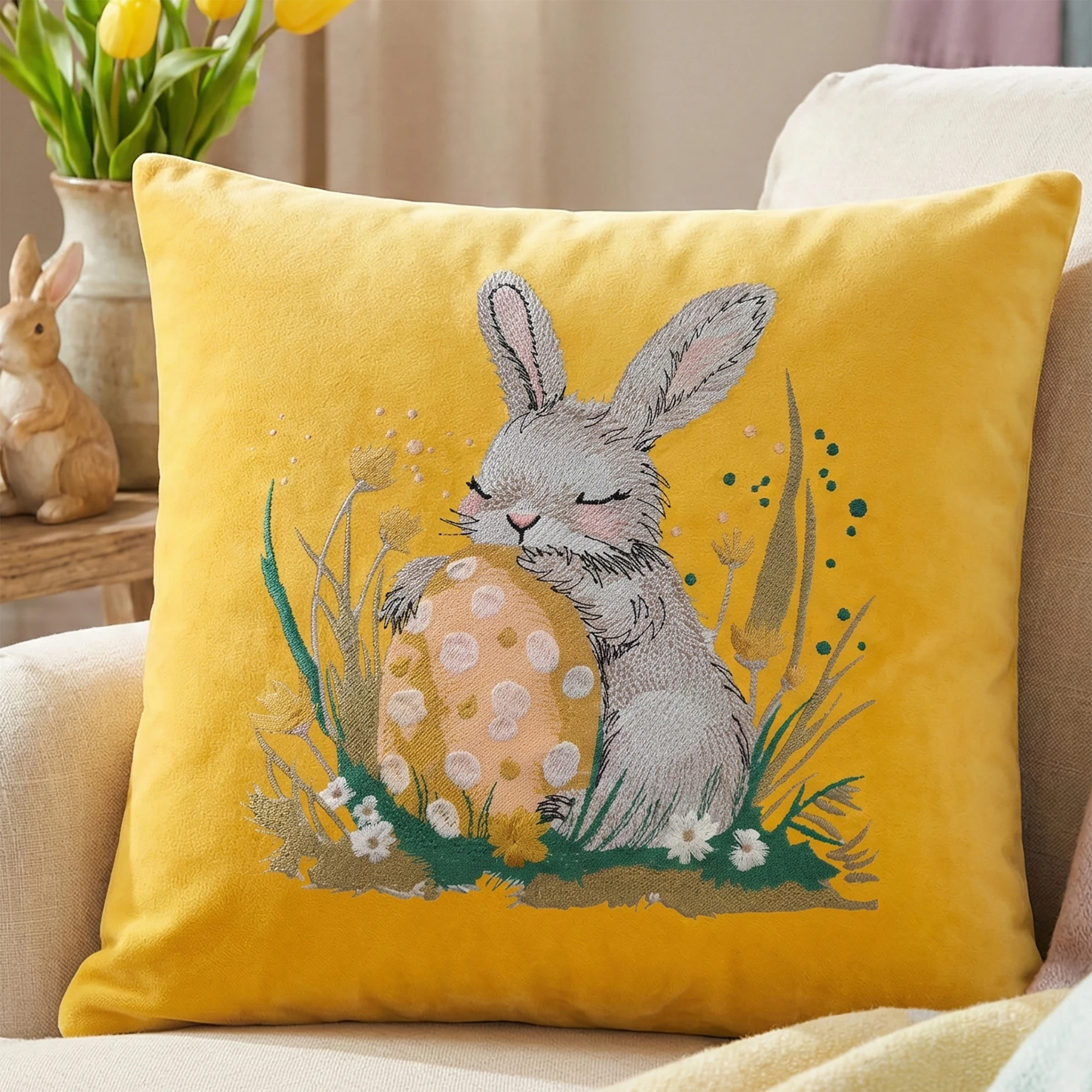 Nasza poszewka welurowa Premium 40x40 cm to elegancka dekoracja, która pięknie dopełni aranżację salonu, sypialni lub jadalni w okresie wiosennym i wielkanocnym 🐰🌿