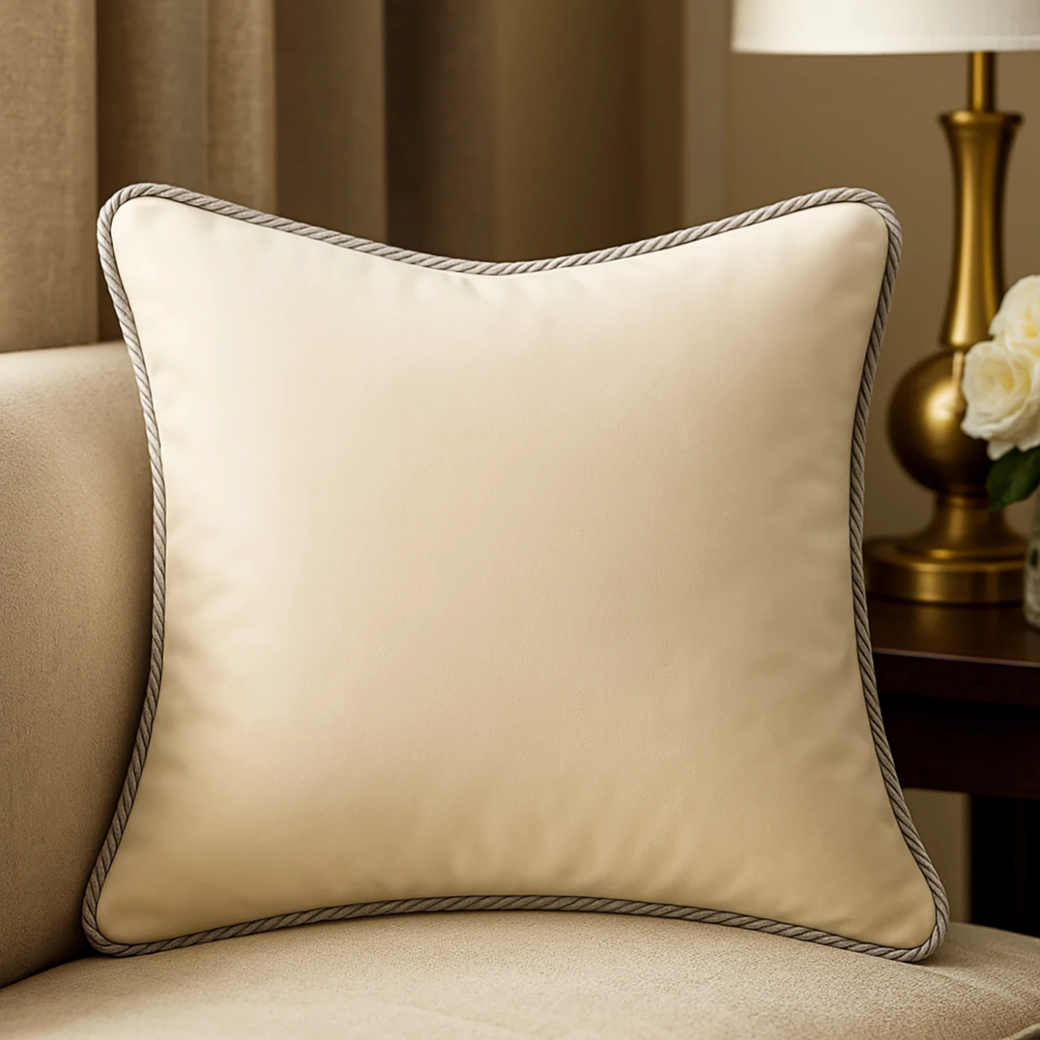 💎 Wykończenie ze Sznurem: Brzegi poszewki zdobi klasyczny, dekoracyjny sznur, który nadaje całości wytworny i ponadczasowy charakter.