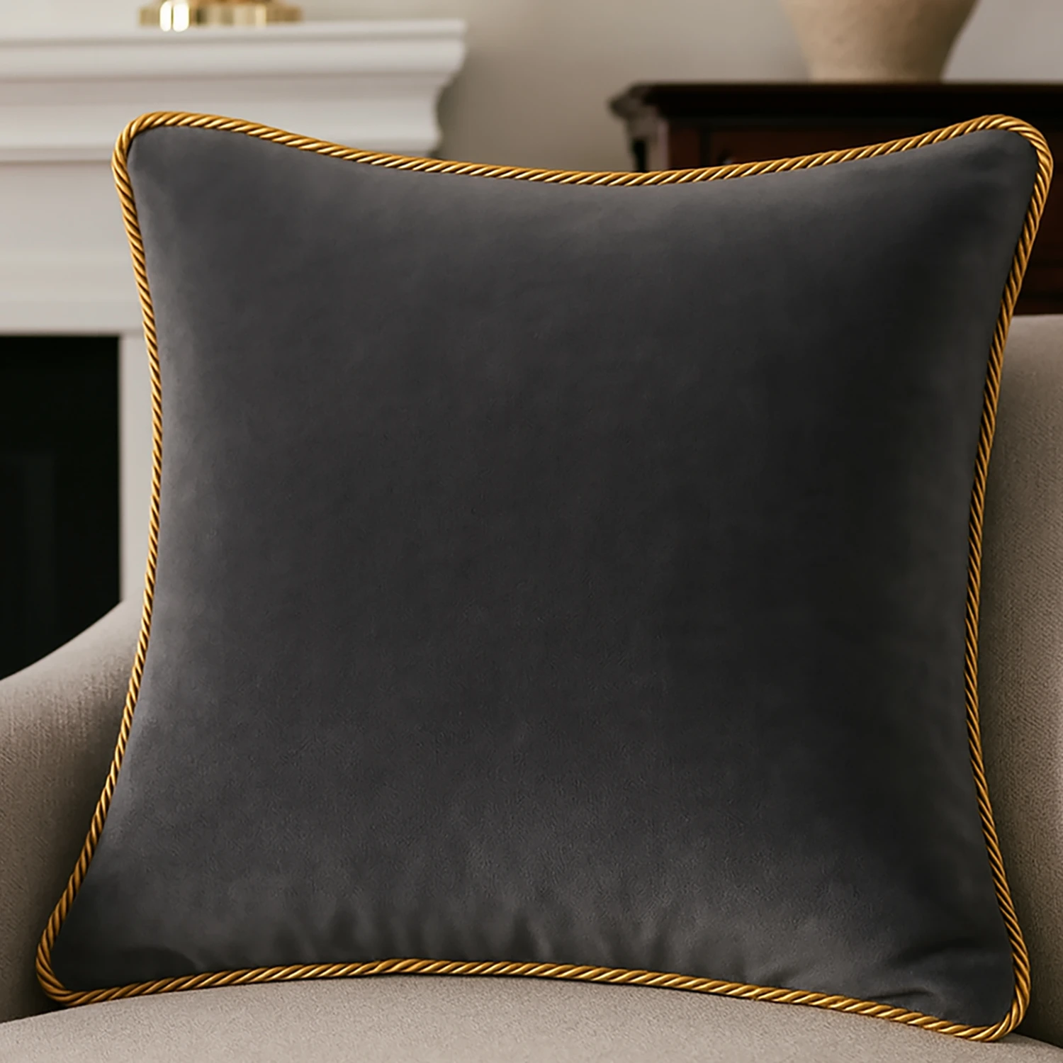 💎 Wykończenie ze Sznurem: Brzegi poszewki zdobi klasyczny, dekoracyjny sznur, który nadaje całości wytworny i ponadczasowy charakter.