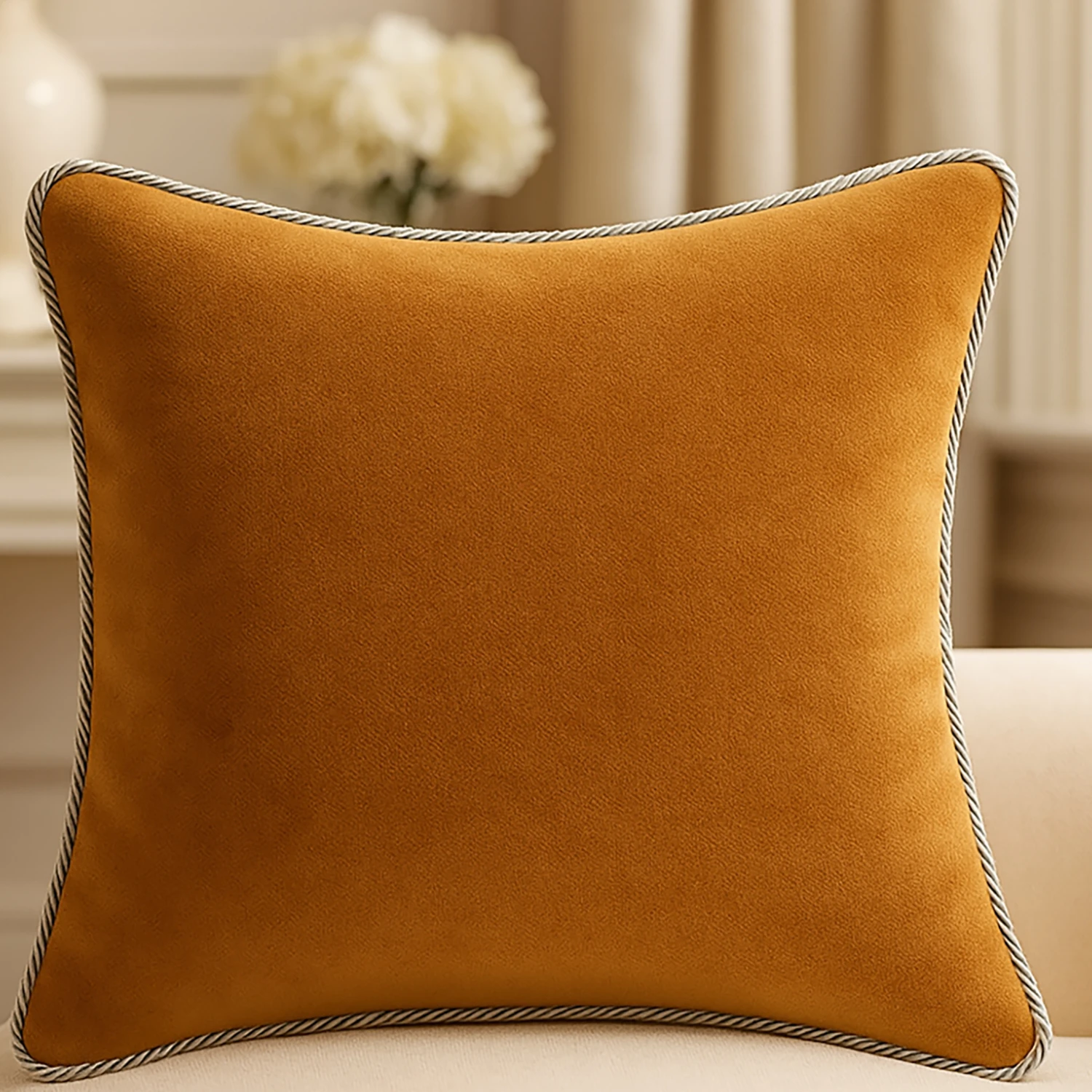 💎 Wykończenie ze Sznurem: Brzegi poszewki zdobi klasyczny, dekoracyjny sznur, który nadaje całości wytworny i ponadczasowy charakter.