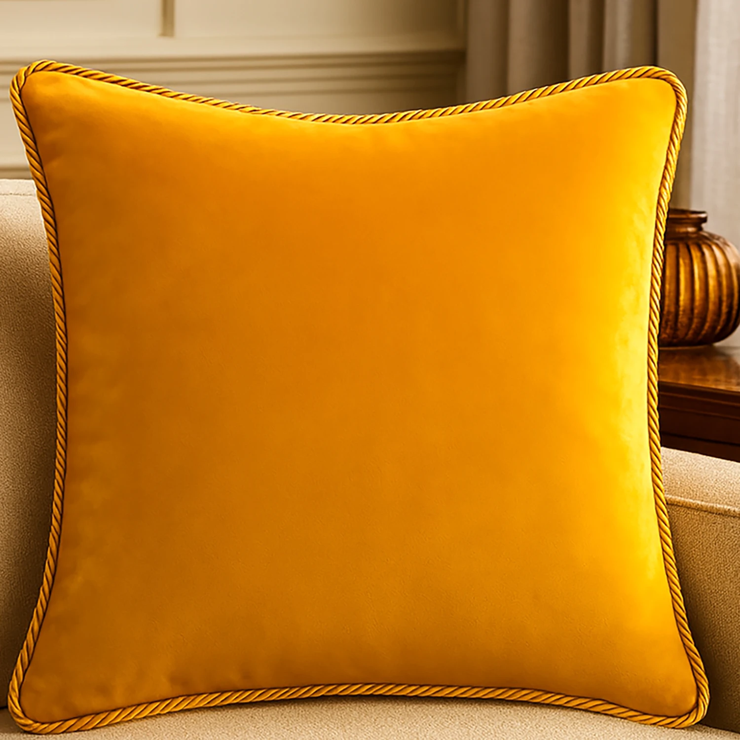 💎 Wykończenie ze Sznurem: Brzegi poszewki zdobi klasyczny, dekoracyjny sznur, który nadaje całości wytworny i ponadczasowy charakter.