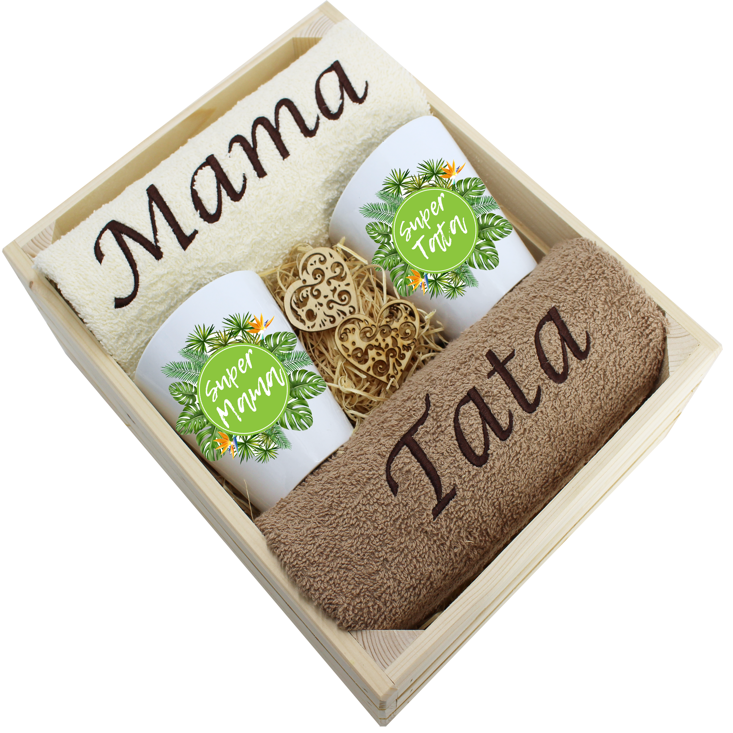 Każdy zestaw ręczników wraz z kubkami jest zapakowany w folię - celofan - zestaw tworzy gotowy prezent do podarowania bez potrzeby dalszego pakowania.
