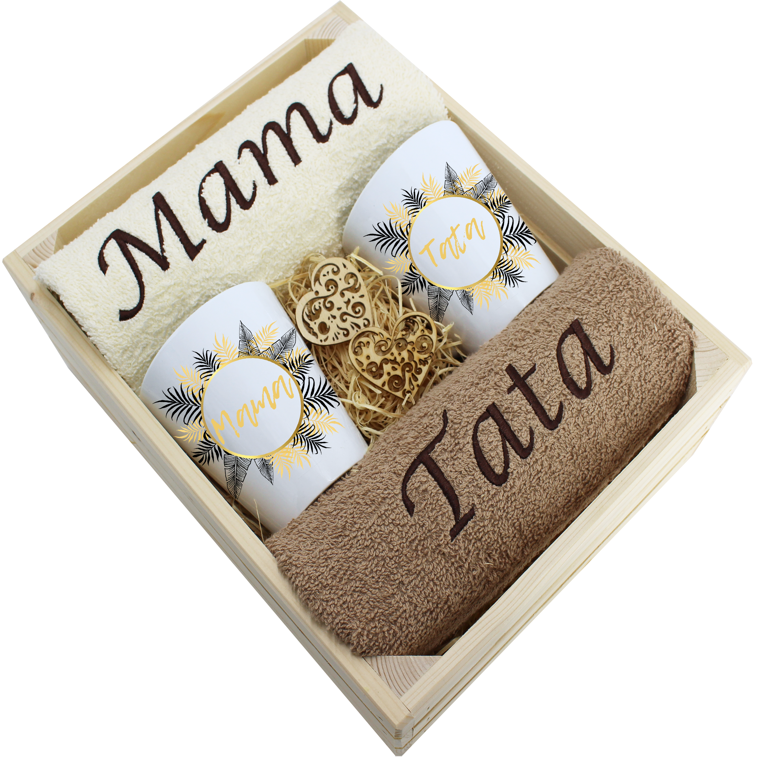 Każdy zestaw ręczników wraz z kubkami jest zapakowany w folię - celofan - zestaw tworzy gotowy prezent do podarowania bez potrzeby dalszego pakowania.