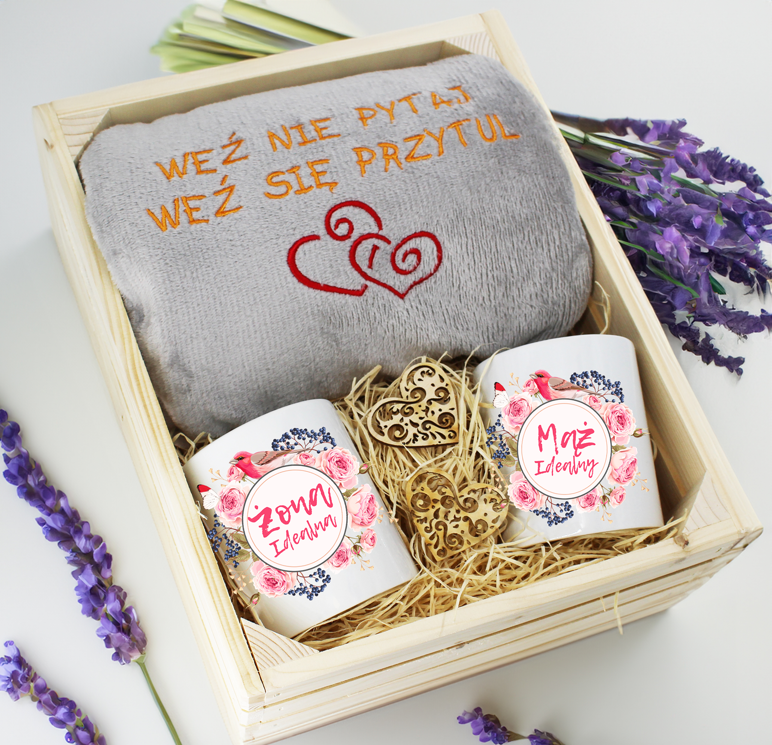 Każdy zestaw ręczników wraz z kubkami jest zapakowany w folię - celofan - zestaw tworzy gotowy prezent do podarowania bez potrzeby dalszego pakowania.