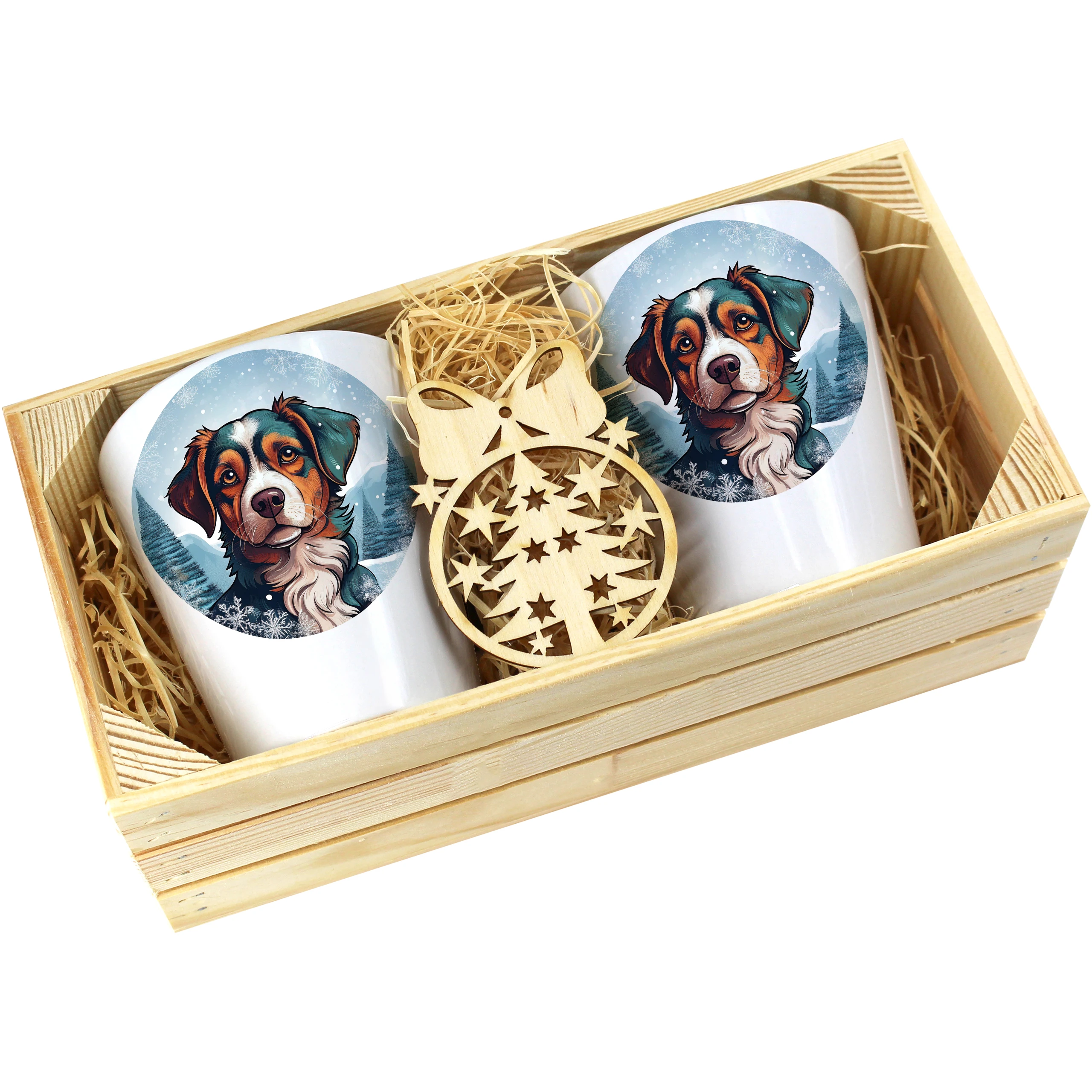 Zestaw składa się z dwóch kubków latte, które są starannie zapakowane w elegancką drewnianą skrzyneczkę. Dodatkowo, do każdego zestawu dołączona jest drewniana bombka, co czyni go idealnym prezentem na święta, urodziny czy inne specjalne okazje. Kubki zostały zaprojektowane, nadrukowane i pakowane w naszej pracowni, co zapewnia ich oryginalność oraz wysoką jakość.