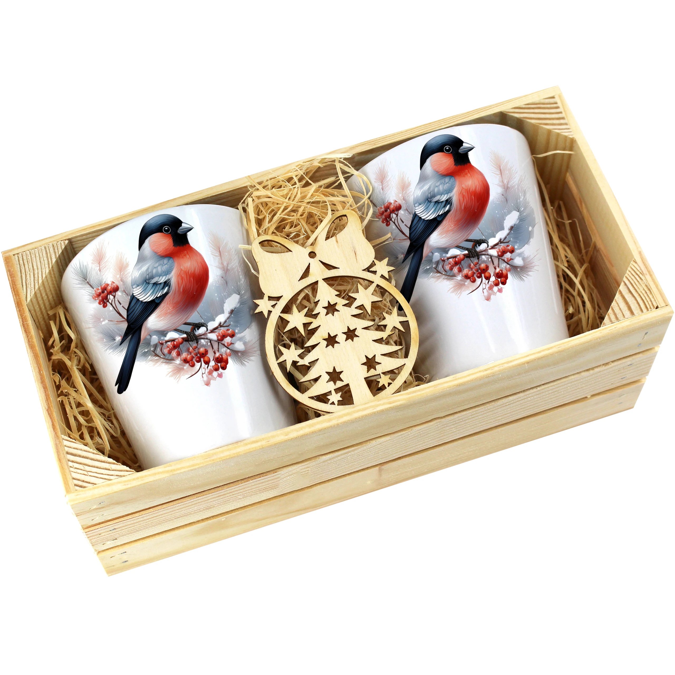 Zestaw składa się z dwóch kubków latte, które są starannie zapakowane w elegancką drewnianą skrzyneczkę. Dodatkowo, do każdego zestawu dołączona jest drewniana bombka, co czyni go idealnym prezentem na święta, urodziny czy inne specjalne okazje. Kubki zostały zaprojektowane, nadrukowane i pakowane w naszej pracowni, co zapewnia ich oryginalność oraz wysoką jakość.