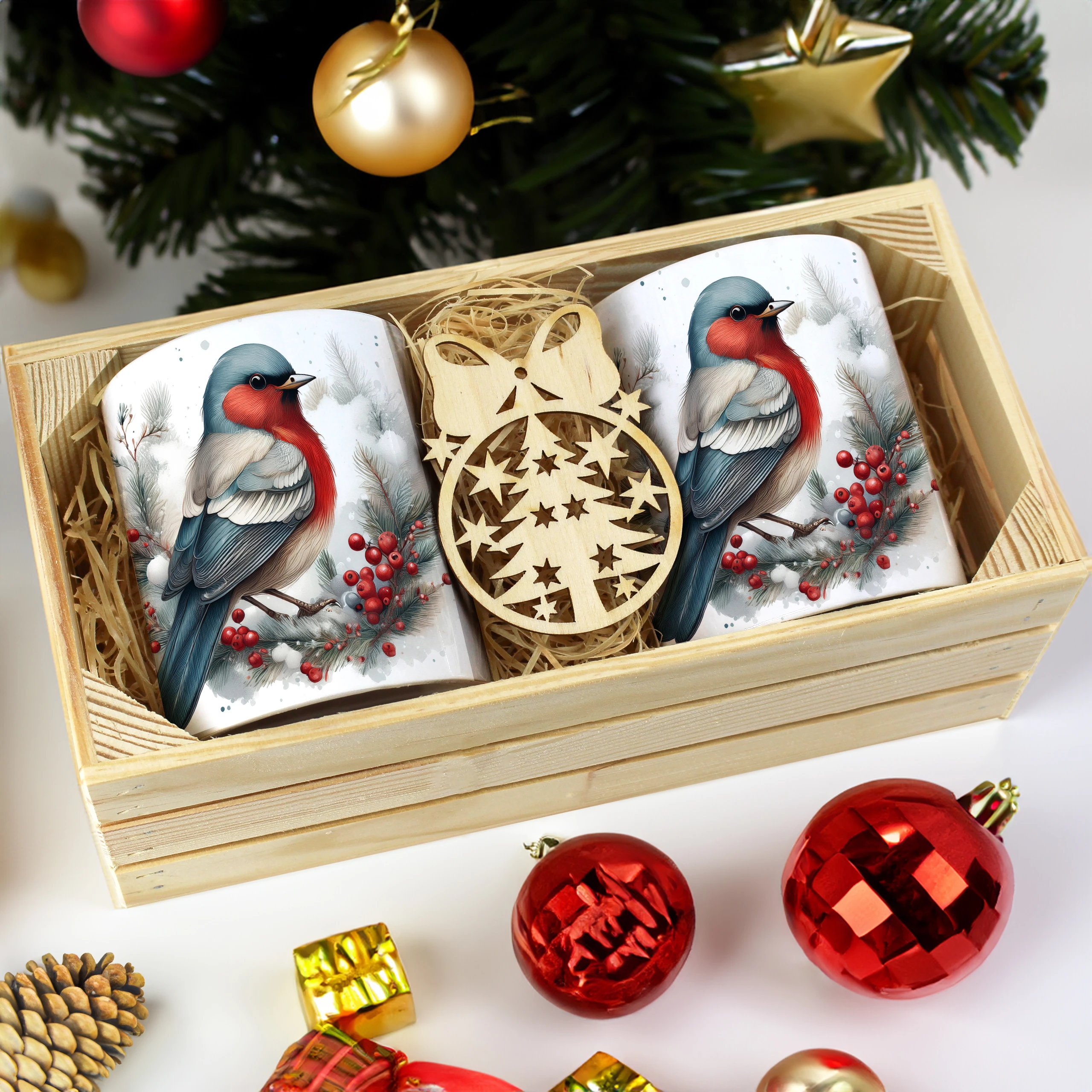Zestaw kubków 330 ml z zimowym wzorem w drewnianej skrzynce to połączenie wyjątkowego wzornictwa i świątecznej elegancji, zaprojektowane z dbałością o każdy szczegół. Idealny dla każdego, kto ceni piękne, świąteczne akcenty w codziennym życiu.