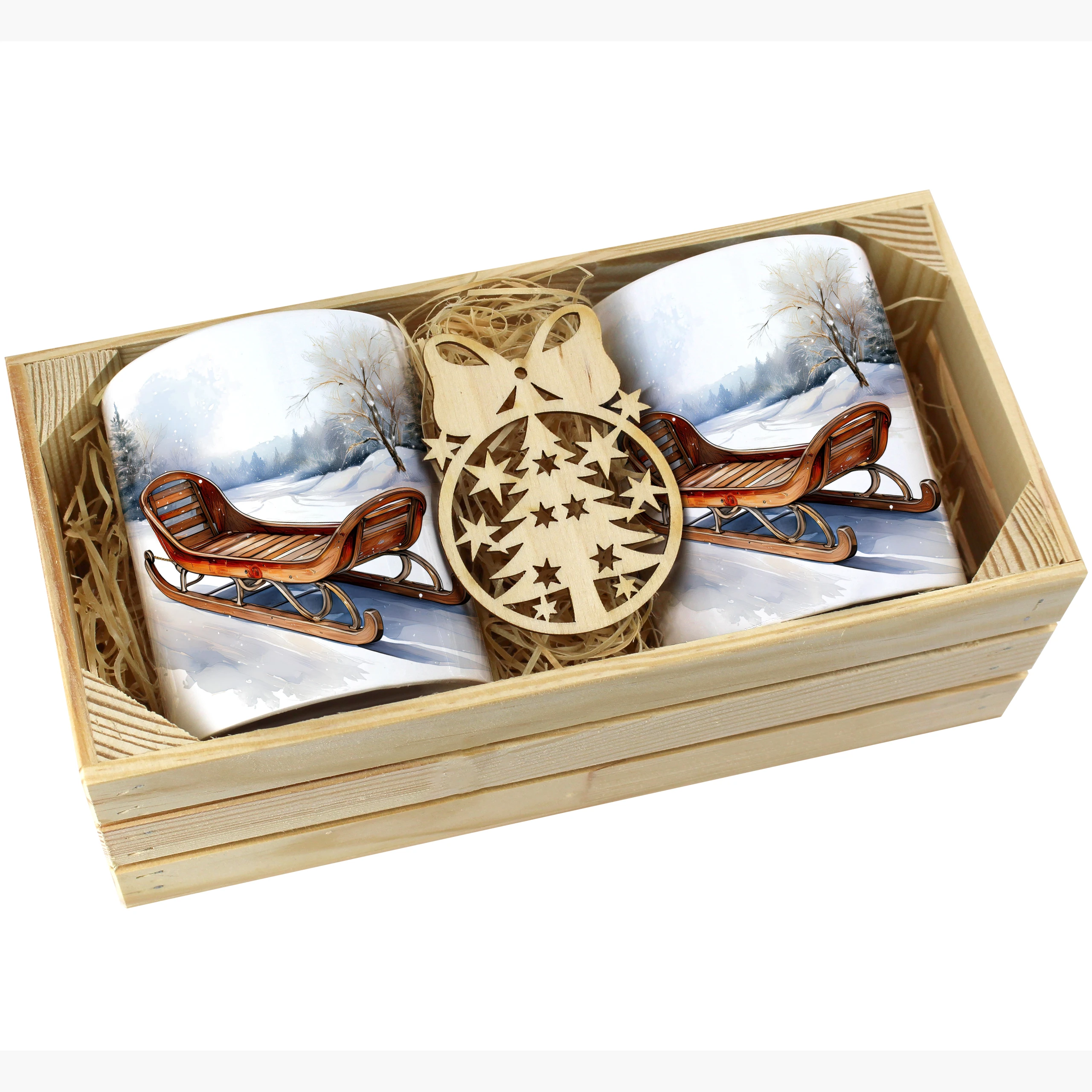 Zestaw kubków 330 ml z zimowym wzorem w drewnianej skrzynce to połączenie wyjątkowego wzornictwa i świątecznej elegancji, zaprojektowane z dbałością o każdy szczegół. Idealny dla każdego, kto ceni piękne, świąteczne akcenty w codziennym życiu.