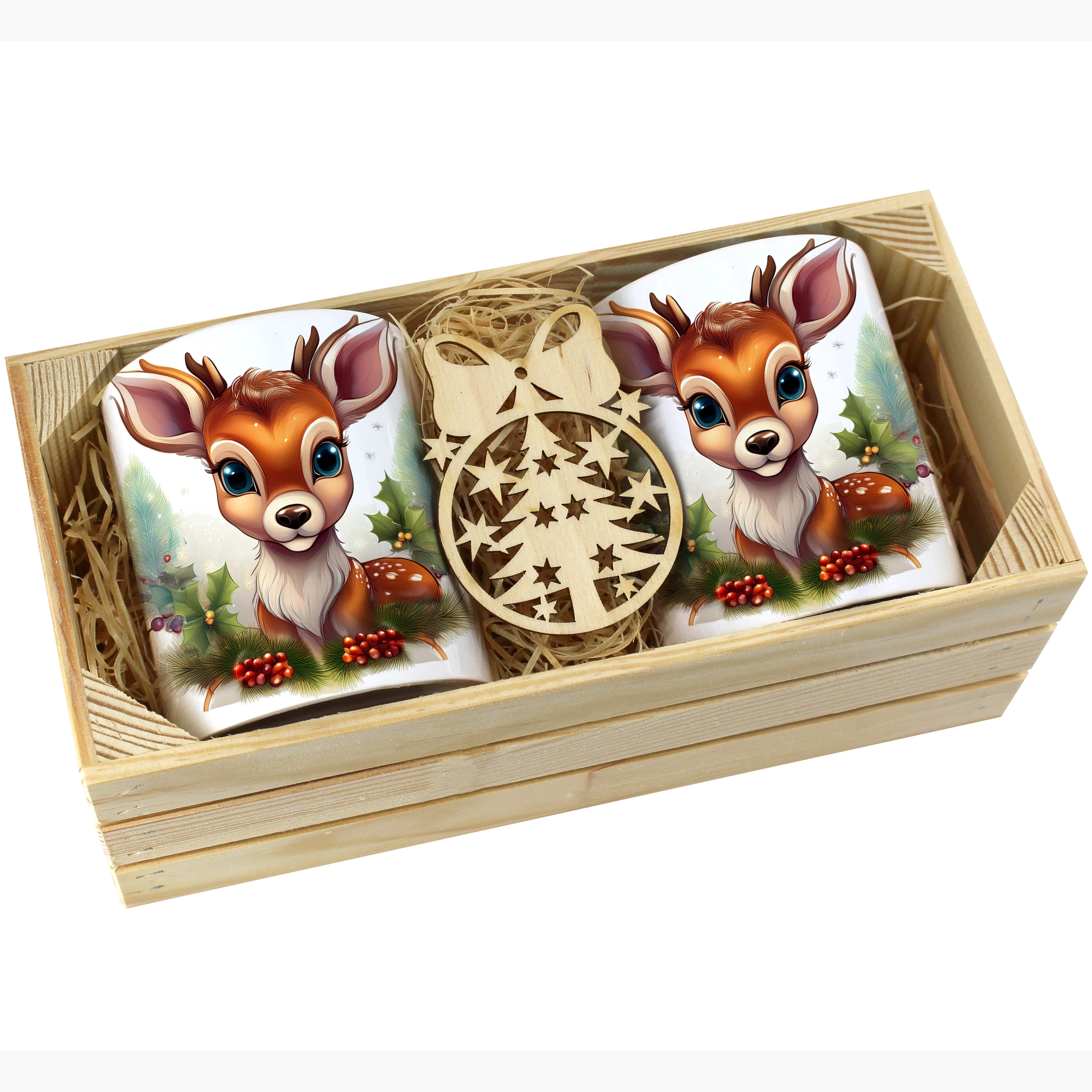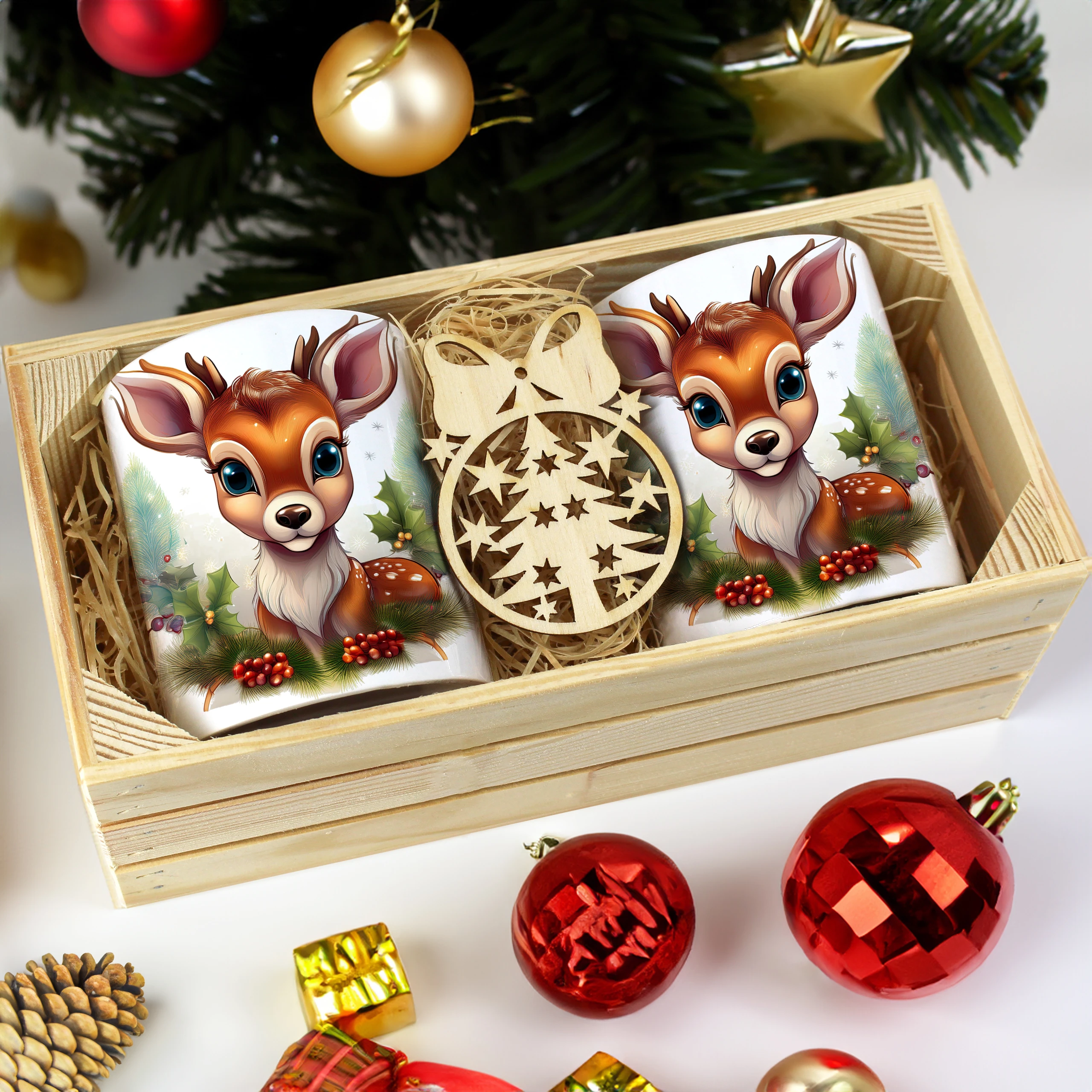 Zestaw kubków 330 ml z zimowym wzorem w drewnianej skrzynce to połączenie wyjątkowego wzornictwa i świątecznej elegancji, zaprojektowane z dbałością o każdy szczegół. Idealny dla każdego, kto ceni piękne, świąteczne akcenty w codziennym życiu.