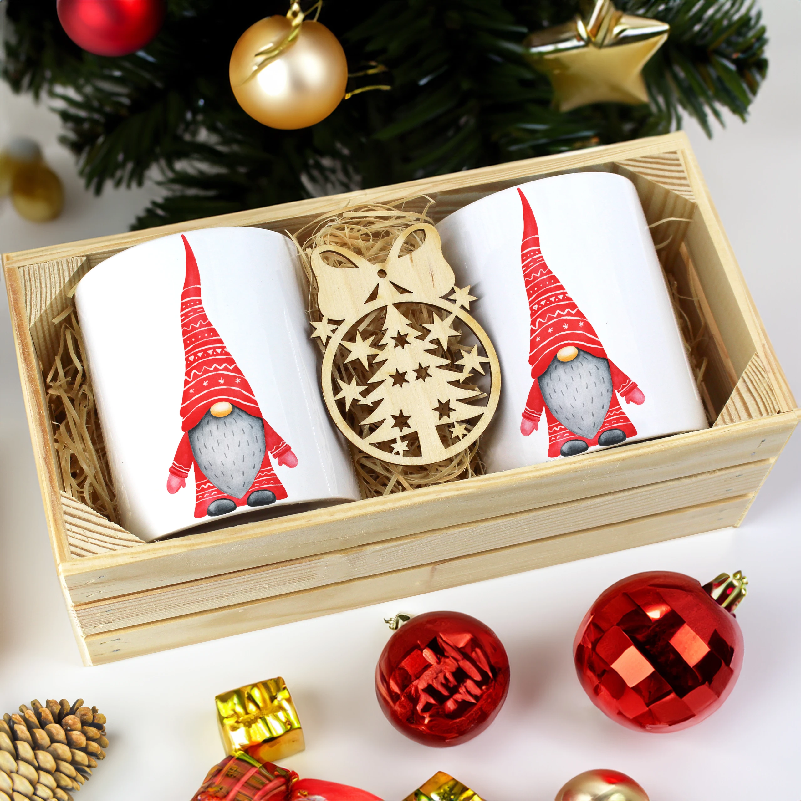 Dodatkowo, do każdego zestawu dołączona jest drewniana bombka, idealnie uzupełniająca świąteczny klimat kompletu. Bombka doskonale sprawdzi się jako ozdoba choinkowa lub dekoracja wnętrza, przywołując magiczny nastrój świąt.