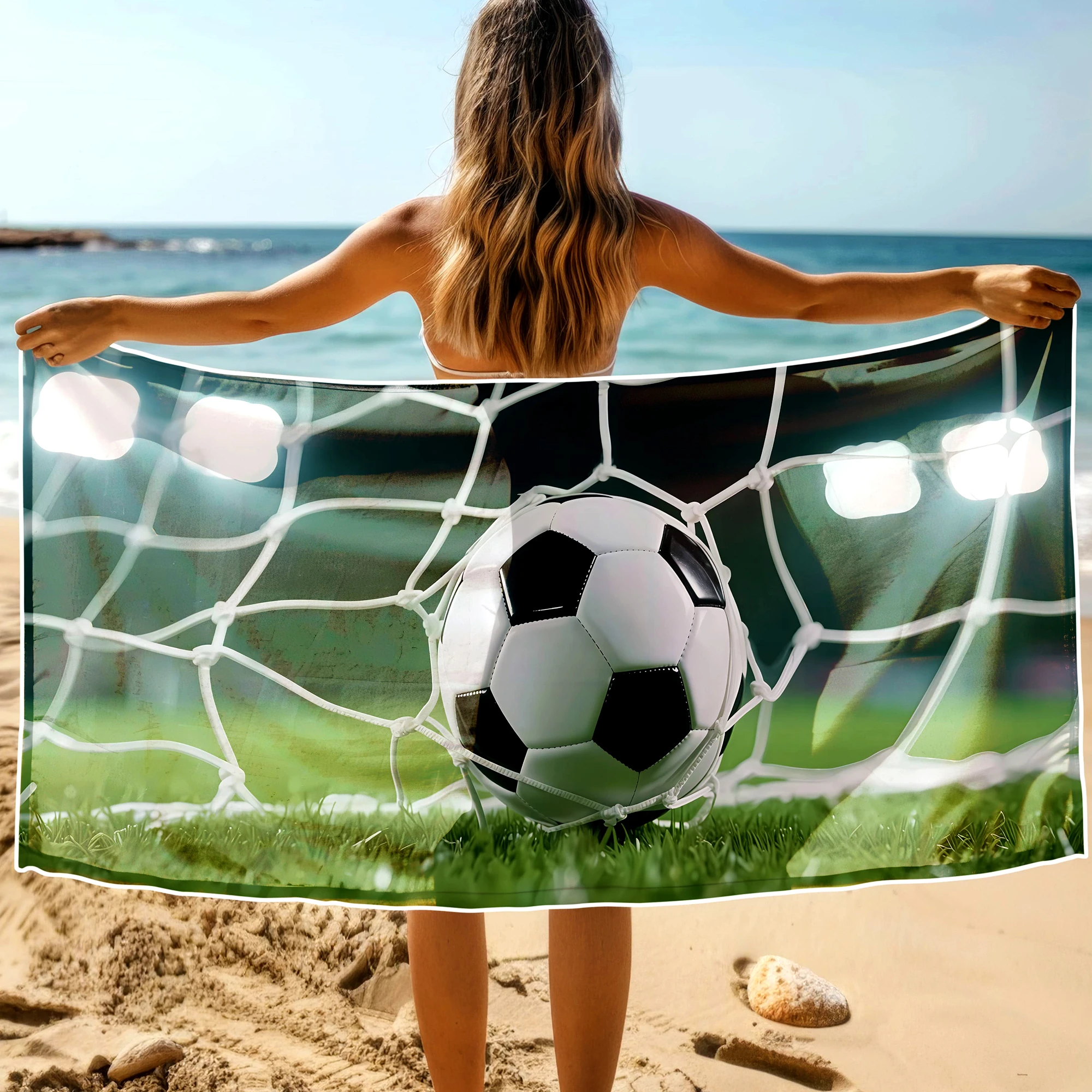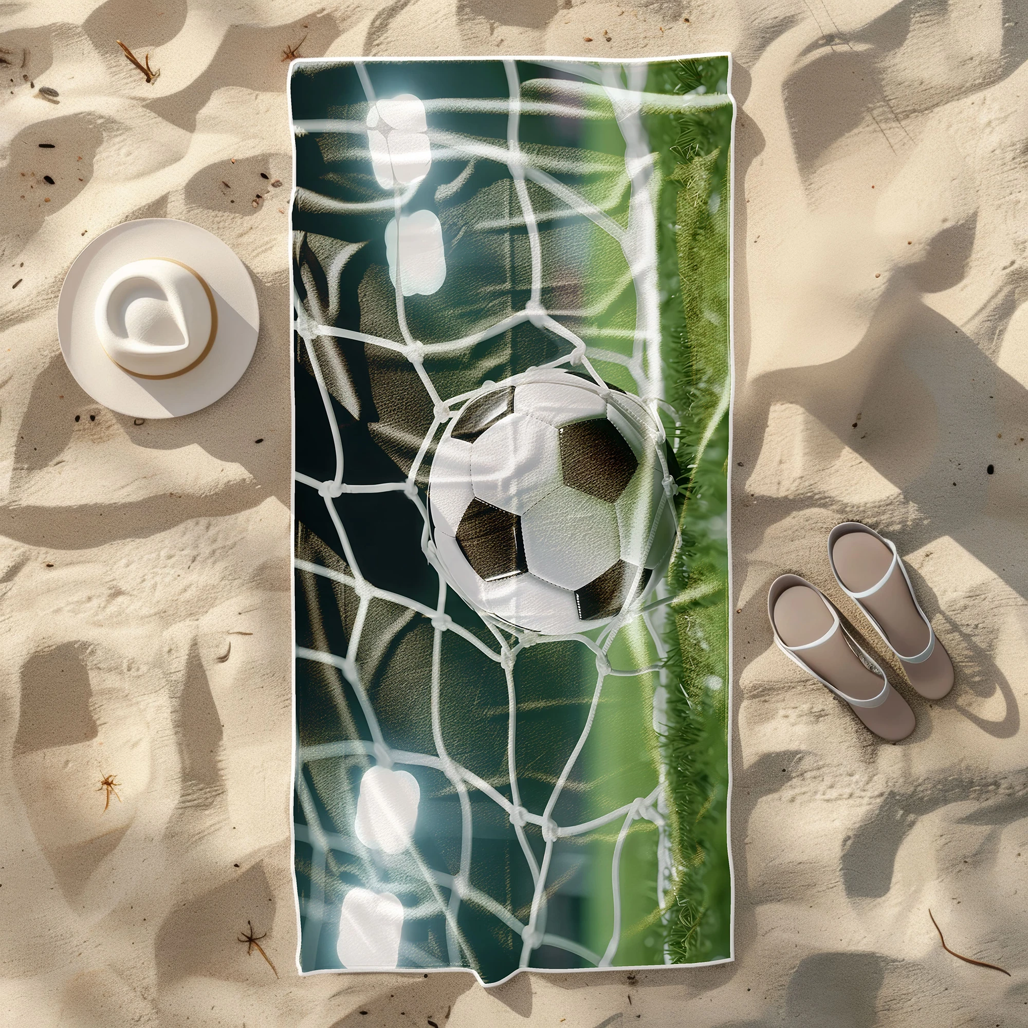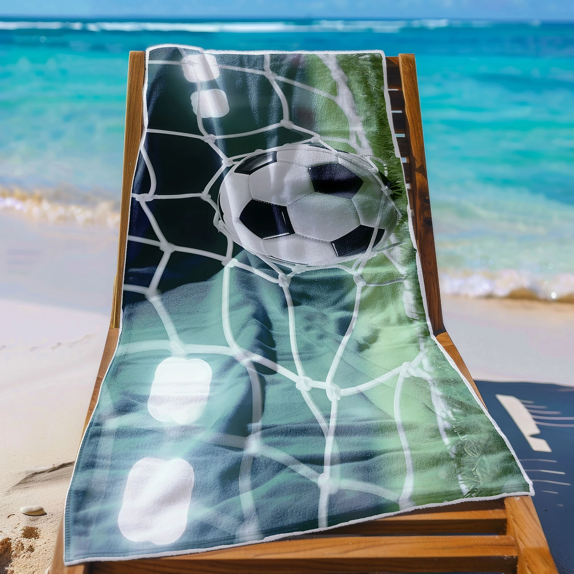 Poczuj radość ze strzelonego gola i zabierz sportowe emocje na każdy trening oraz wakacje! ⚽ Ten niezwykły, lekki ręcznik plażowy z mikrofibry z kolekcji MARINA przyciąga spojrzenia swoim dynamicznym, piłkarskim wzorem. Wyrazista grafika w wysokiej rozdzielczości przedstawia moment triumfu – piłkę nożną lądującą w siatce bramki, oświetloną jasnym blaskiem stadionowych jupiterów. To absolutny hit dla każdego fana futbolu, który pragnie wyrazić swoją pasję i wyróżnić się unikalnym, pełnym energii designem. 🥅