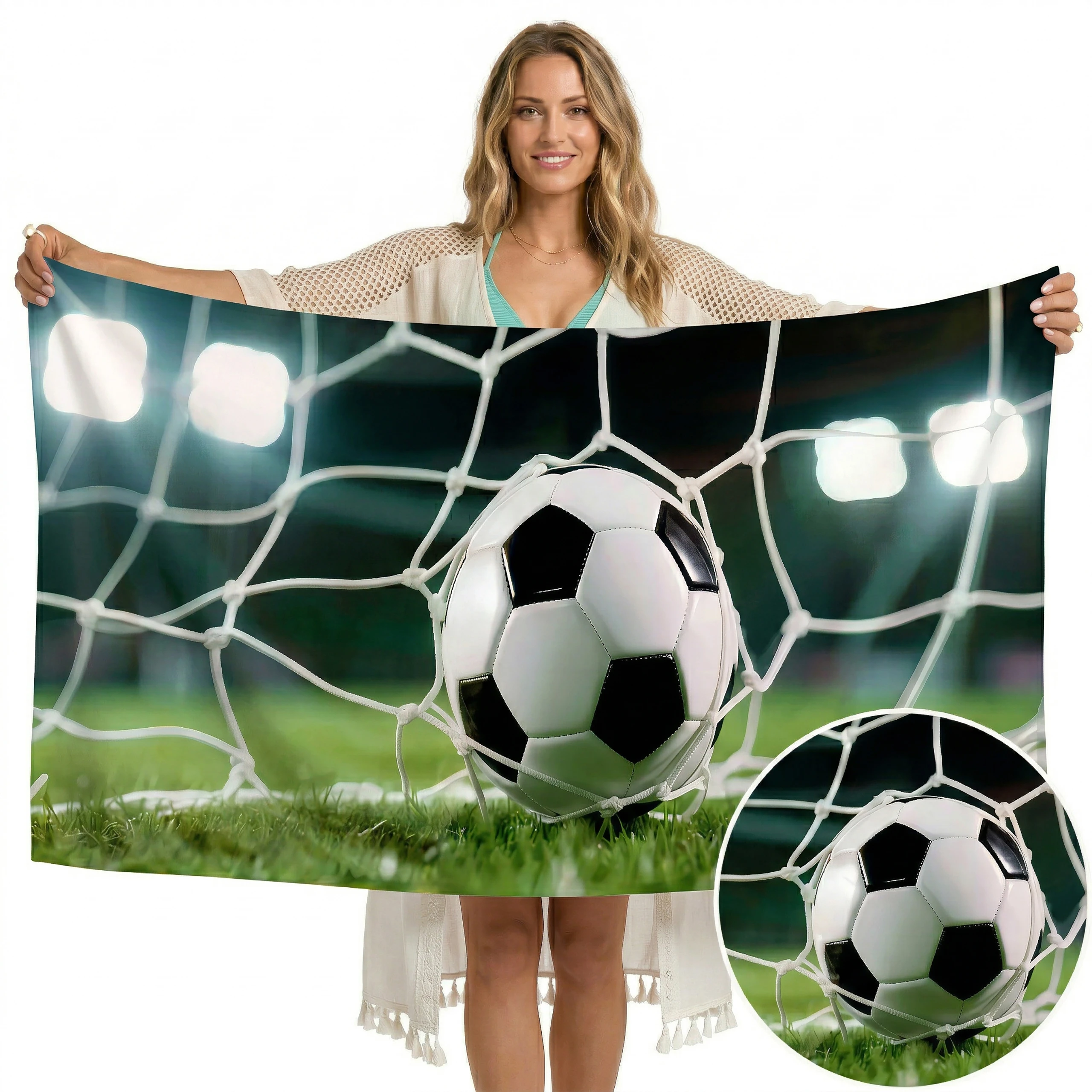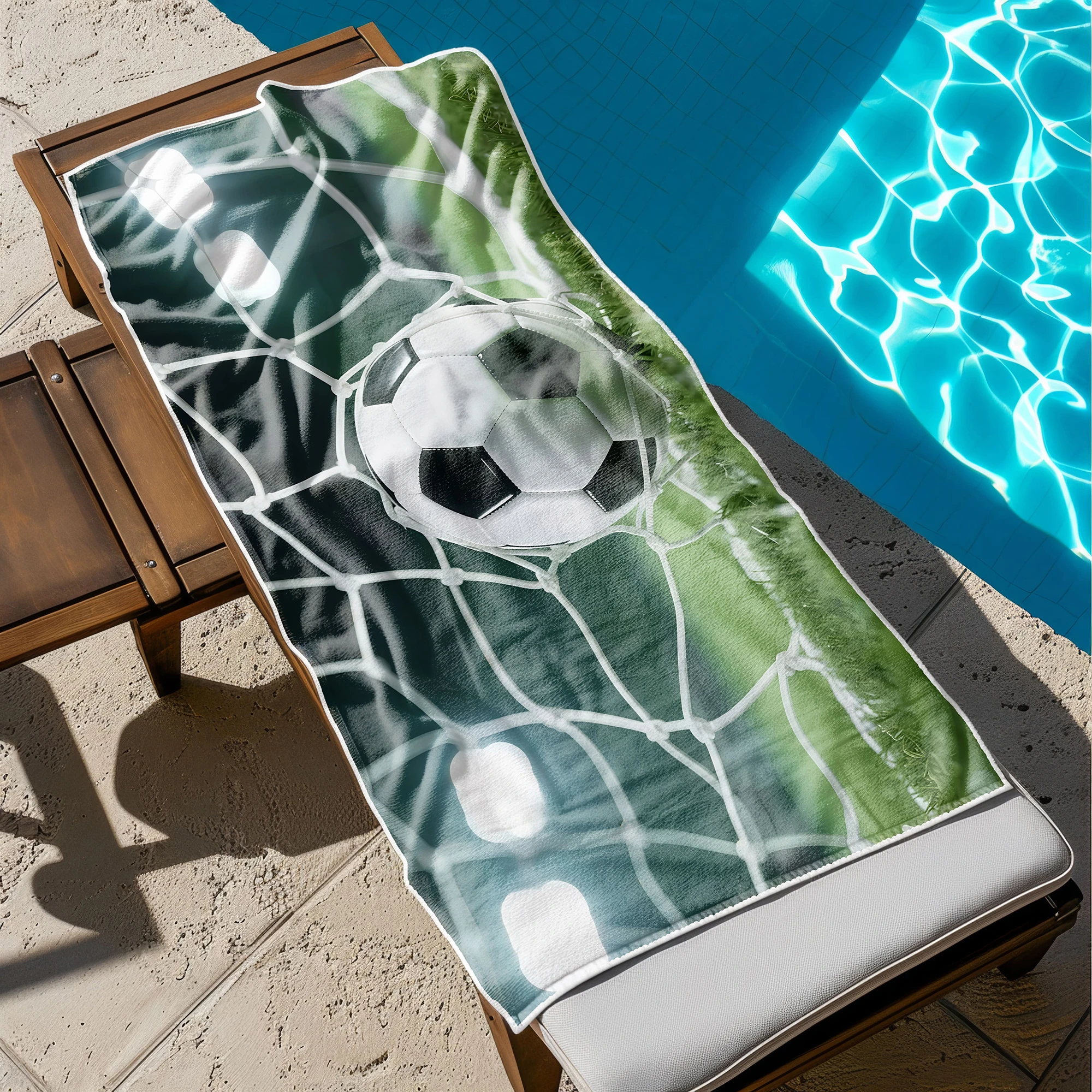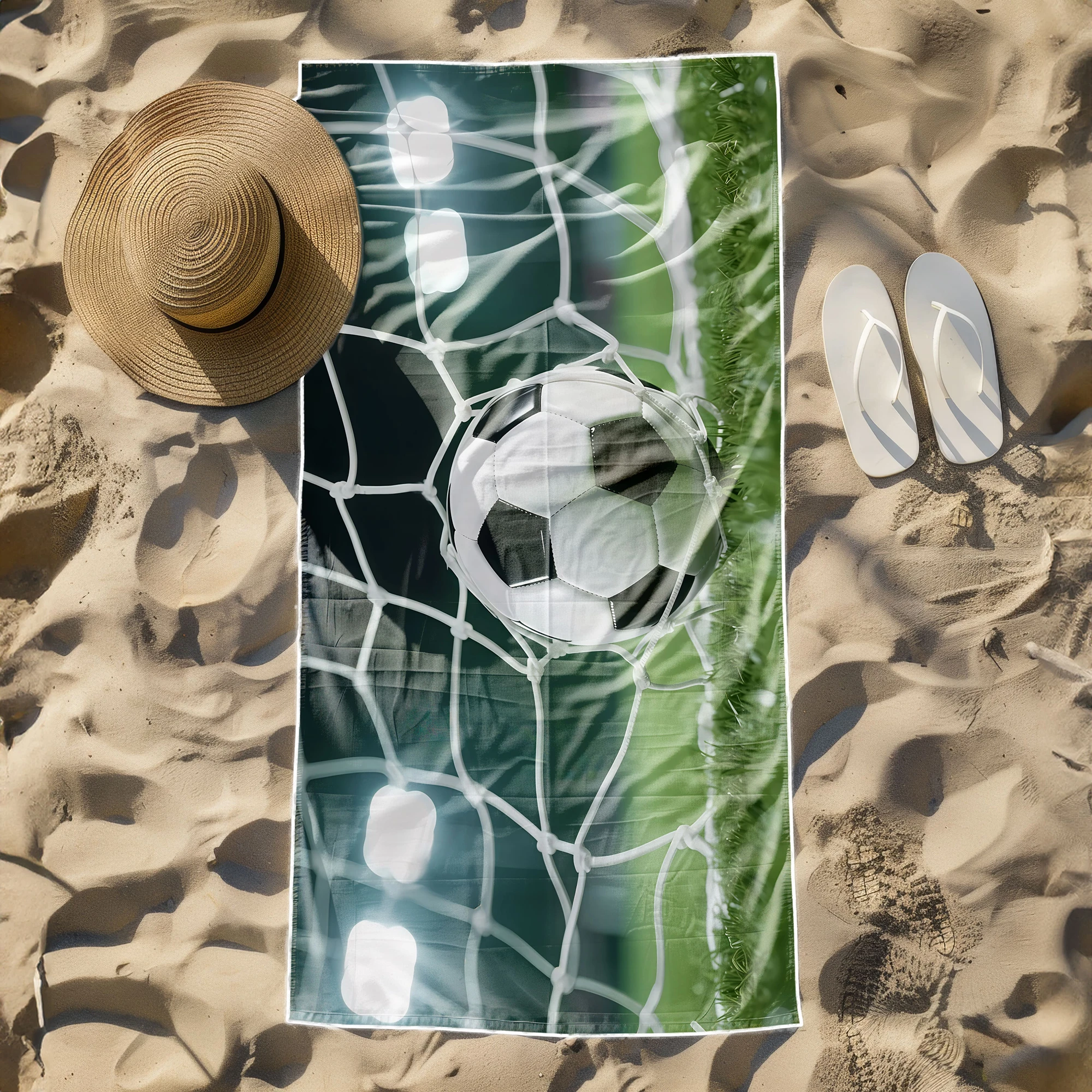 Poczuj radość ze strzelonego gola i zabierz sportowe emocje na każdy trening oraz wakacje! ⚽ Ten niezwykły, lekki ręcznik plażowy z mikrofibry z kolekcji MARINA przyciąga spojrzenia swoim dynamicznym, piłkarskim wzorem. Wyrazista grafika w wysokiej rozdzielczości przedstawia moment triumfu – piłkę nożną lądującą w siatce bramki, oświetloną jasnym blaskiem stadionowych jupiterów. To absolutny hit dla każdego fana futbolu, który pragnie wyrazić swoją pasję i wyróżnić się unikalnym, pełnym energii designem. 🥅
