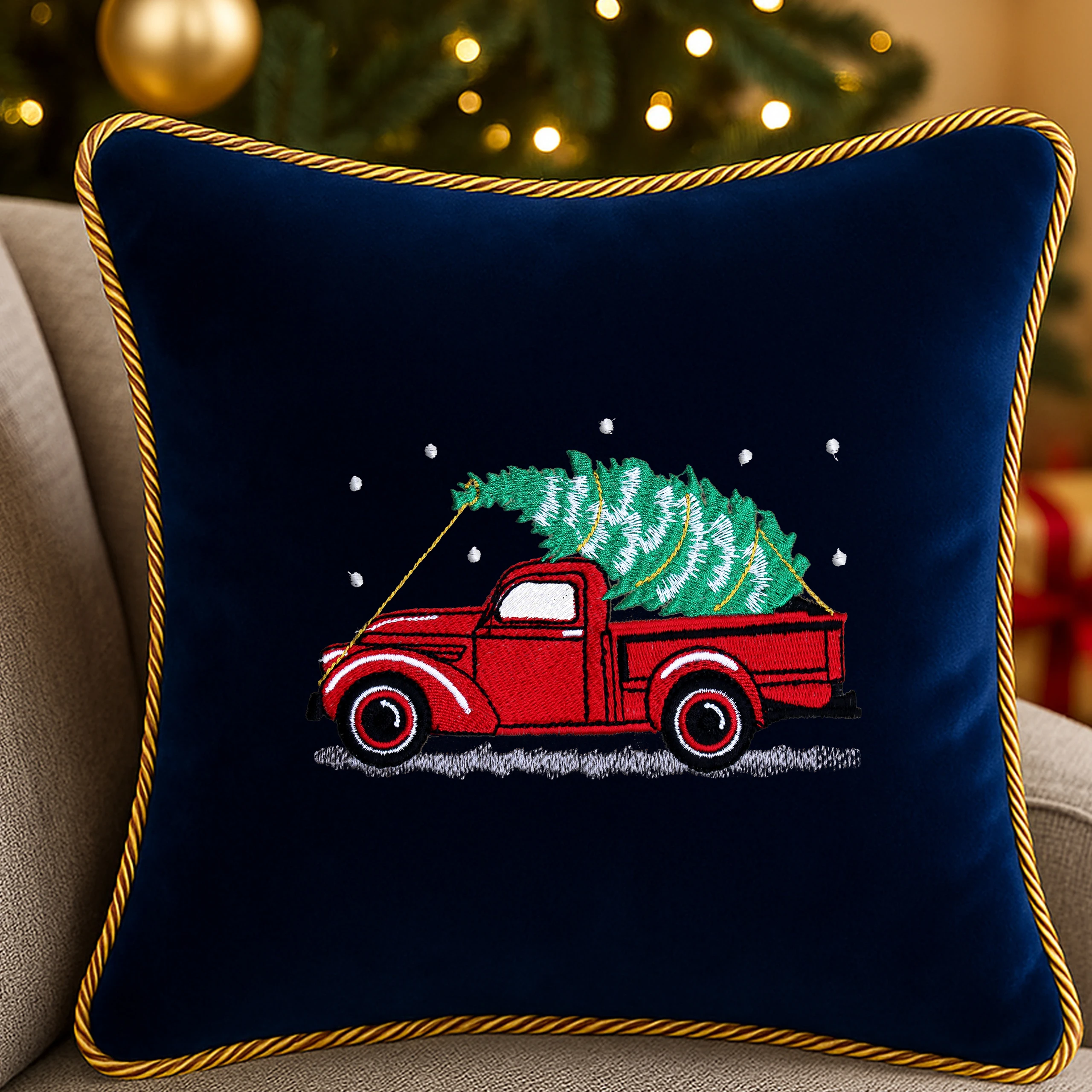 Całość uzupełnia ozdobny sznur w kolorze złotym 🎗️, który dodaje poszewce elegancji i sprawia, że pięknie prezentuje się w świątecznym wnętrzu.