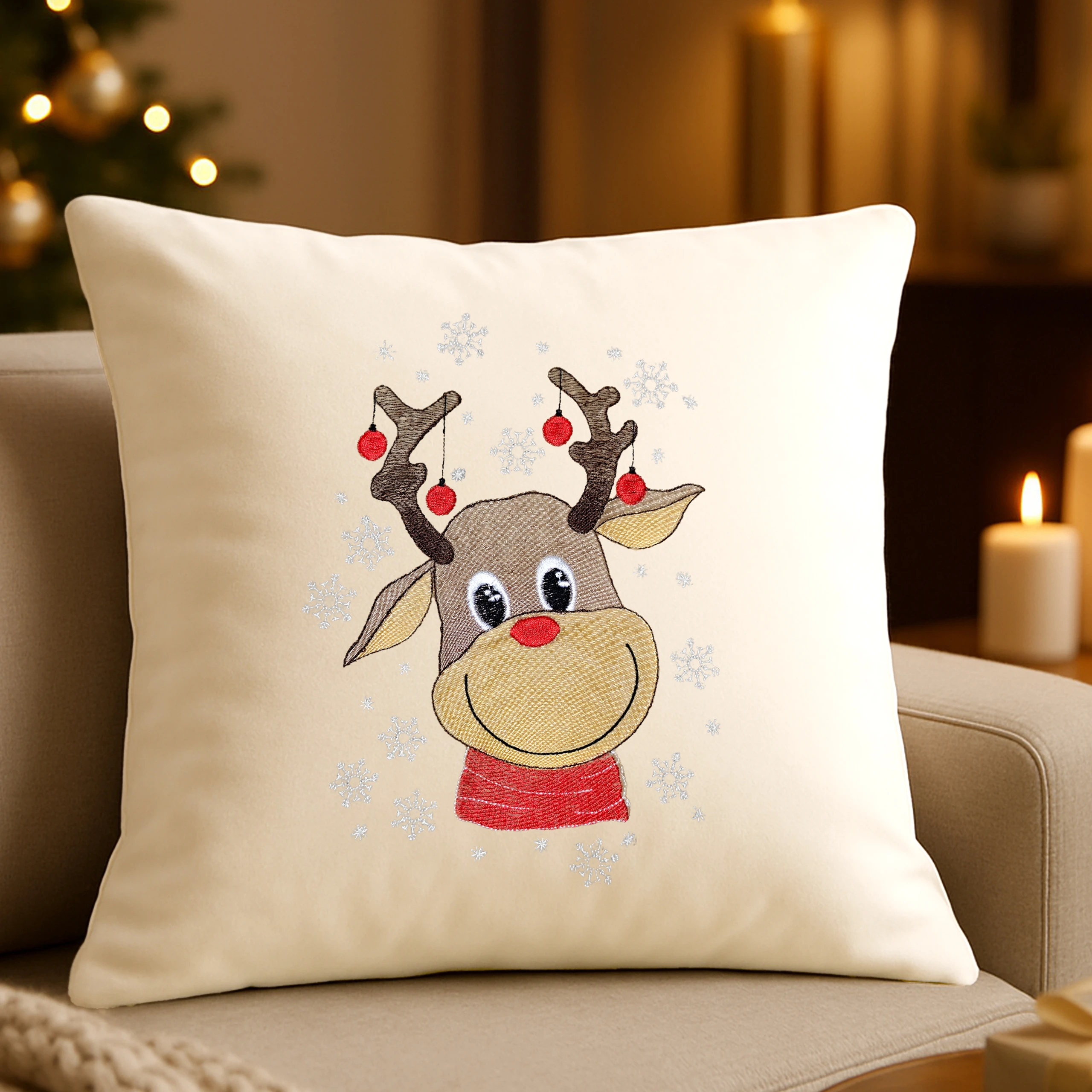 Każda poszewka powstaje z miękkiego, aksamitnego weluru premium 💎, który pięknie odbija światło i dodaje elegancji każdemu wnętrzu. Autorski haft świąteczny 🎄🦌⭐ został zaprojektowany i wykonany w naszej pracowni, dzięki czemu każda poszewka jest niepowtarzalna i dopracowana w najmniejszym detalu.