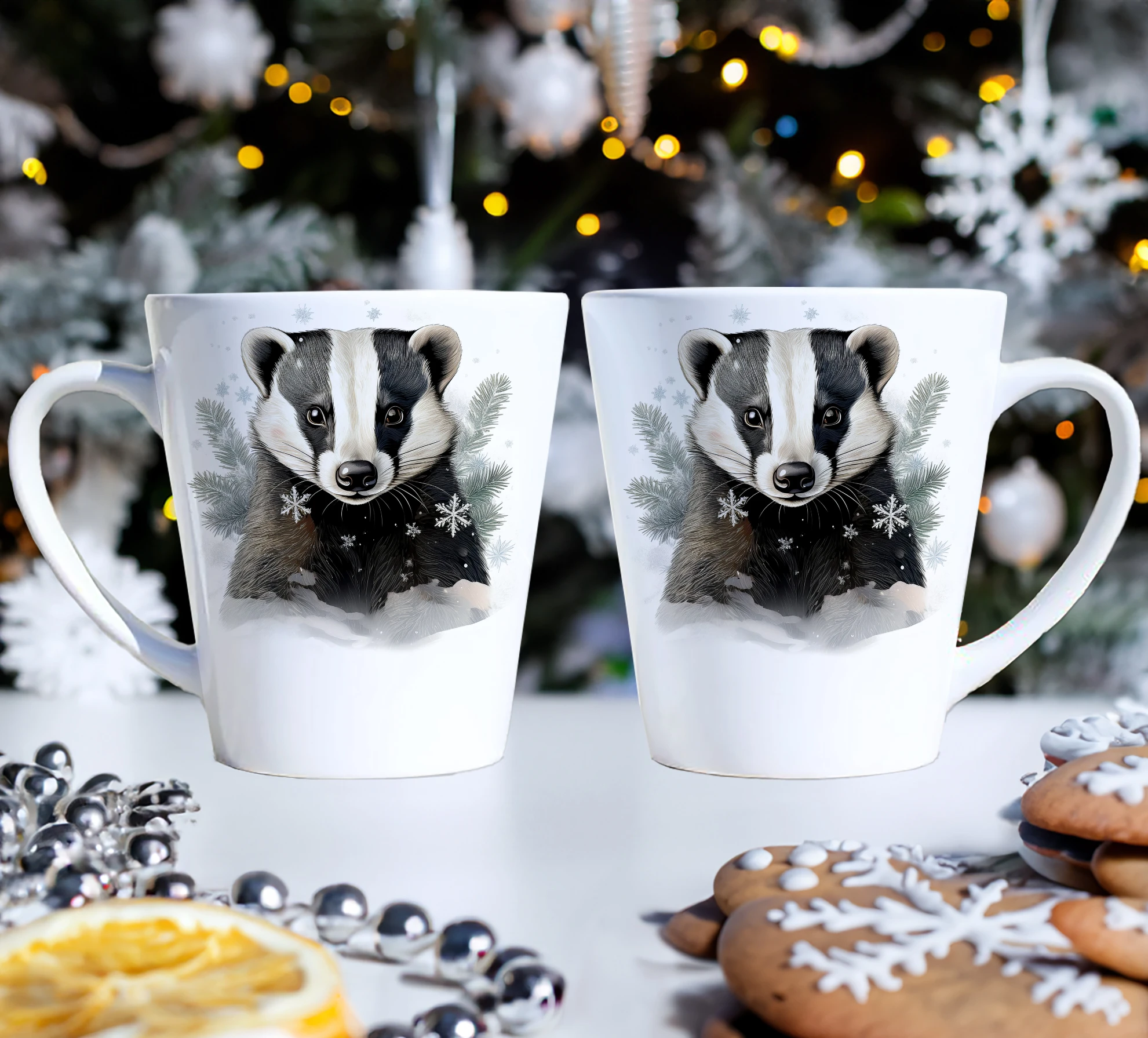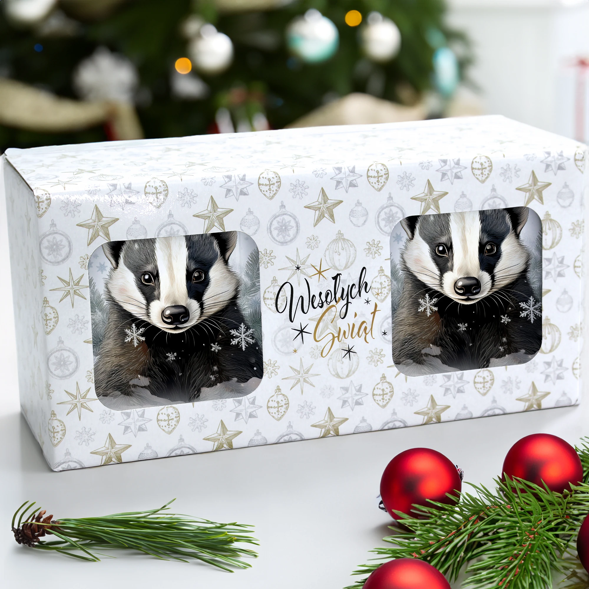 Komplet dwóch kubków 330 ml z wyjątkowym świątecznym motywem to elegancka propozycja na prezent, zapakowana w ozdobne pudełko o wymiarach 22,5x11x9,5 cm z okienkiem, które umożliwia zaprezentowanie wzoru kubków. Kubki o pojemności 330 ml, ozdobione pięknym świątecznym nadrukiem, są praktyczne i funkcjonalne, ponieważ można je myć w zmywarce. Dzięki temu zestaw stanowi doskonały wybór na prezent, który łączy estetykę z wygodą codziennego użytkowania. Projekt i cały proces produkcji odbywa się w naszej pracowni, co zapewnia ich unikalność i wysoką jakość wykonania.