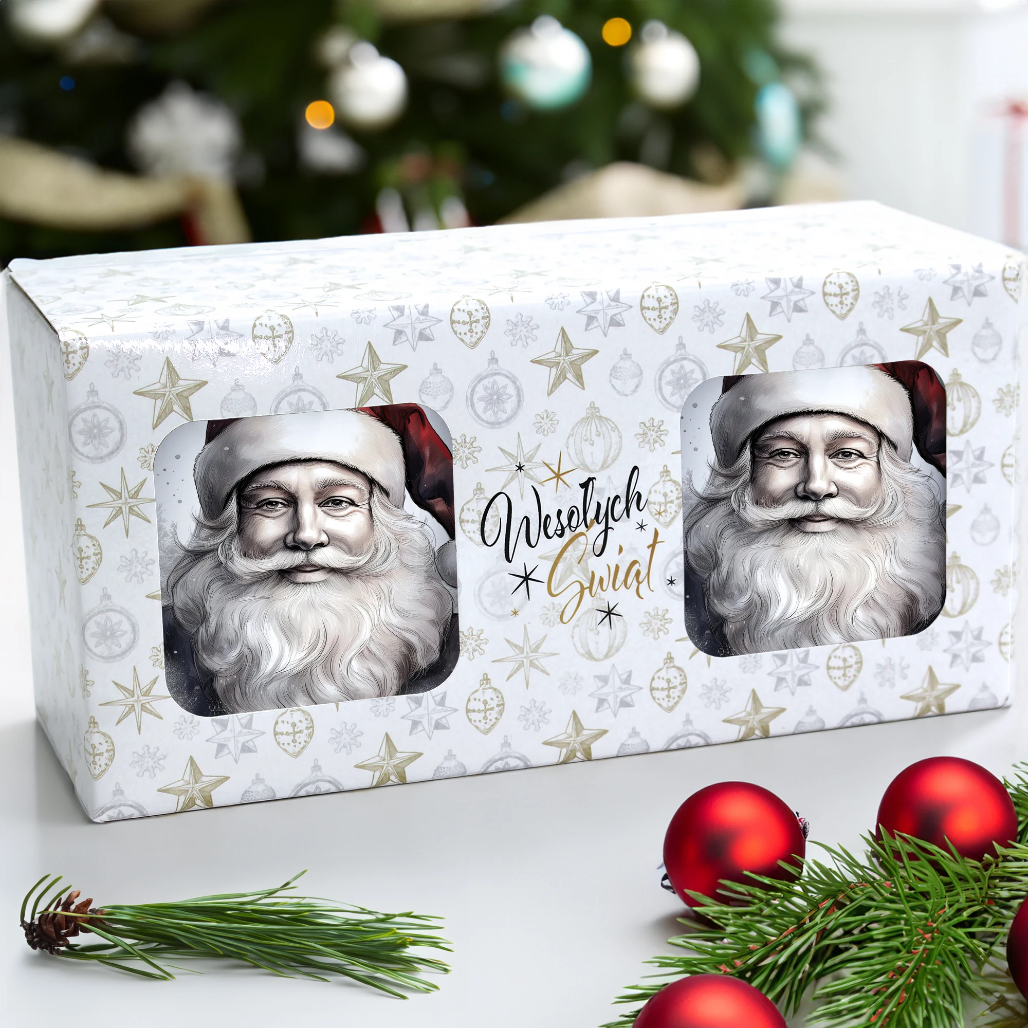 Komplet dwóch kubków 330 ml z wyjątkowym świątecznym motywem to elegancka propozycja na prezent, zapakowana w ozdobne pudełko o wymiarach 22,5x11x9,5 cm z okienkiem, które umożliwia zaprezentowanie wzoru kubków. Kubki o pojemności 330 ml, ozdobione pięknym świątecznym nadrukiem, są praktyczne i funkcjonalne, ponieważ można je myć w zmywarce. Dzięki temu zestaw stanowi doskonały wybór na prezent, który łączy estetykę z wygodą codziennego użytkowania. Projekt i cały proces produkcji odbywa się w naszej pracowni, co zapewnia ich unikalność i wysoką jakość wykonania.