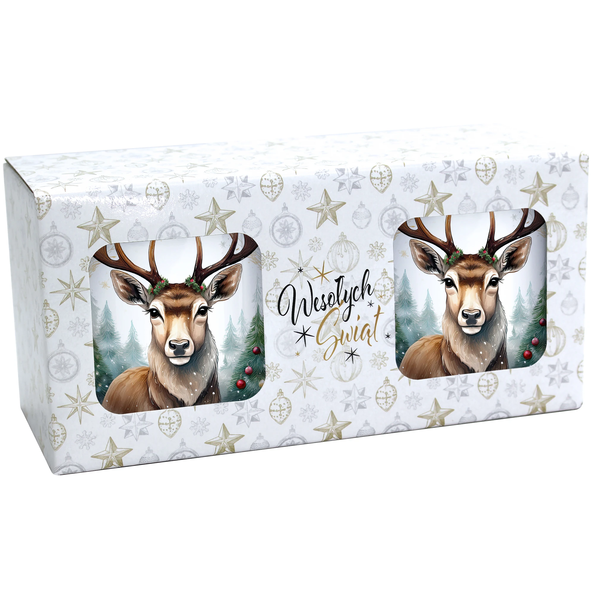 Komplet dwóch kubków 330 ml z wyjątkowym świątecznym motywem to elegancka propozycja na prezent, zapakowana w ozdobne pudełko o wymiarach 22,5x11x9,5 cm z okienkiem, które umożliwia zaprezentowanie wzoru kubków. Kubki o pojemności 330 ml, ozdobione pięknym świątecznym nadrukiem, są praktyczne i funkcjonalne, ponieważ można je myć w zmywarce. Dzięki temu zestaw stanowi doskonały wybór na prezent, który łączy estetykę z wygodą codziennego użytkowania. Projekt i cały proces produkcji odbywa się w naszej pracowni, co zapewnia ich unikalność i wysoką jakość wykonania.