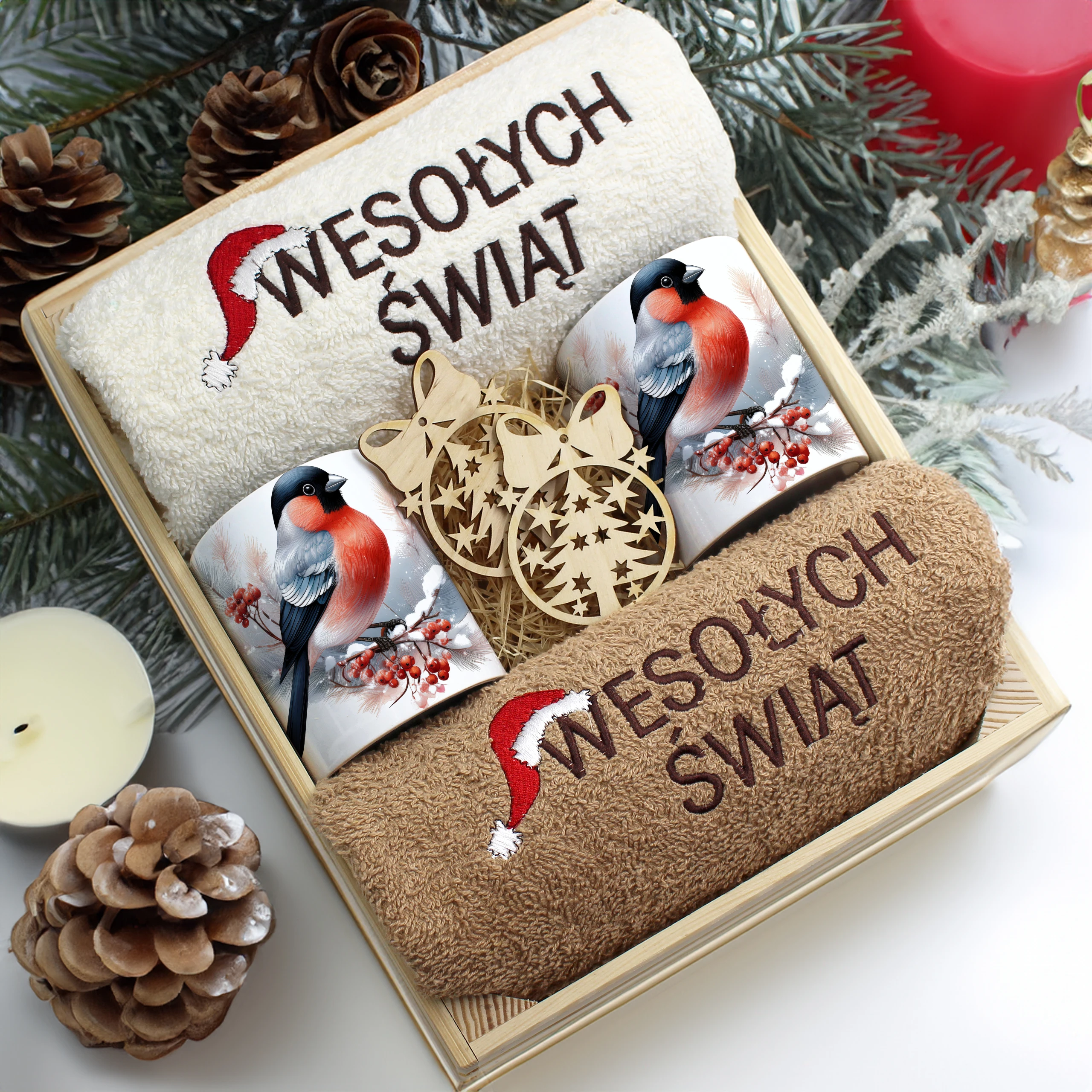 Każdy zestaw ręczników wraz z kubkami jest zapakowany w folię - celofan - zestaw tworzy gotowy prezent do podarowania bez potrzeby dalszego pakowania.