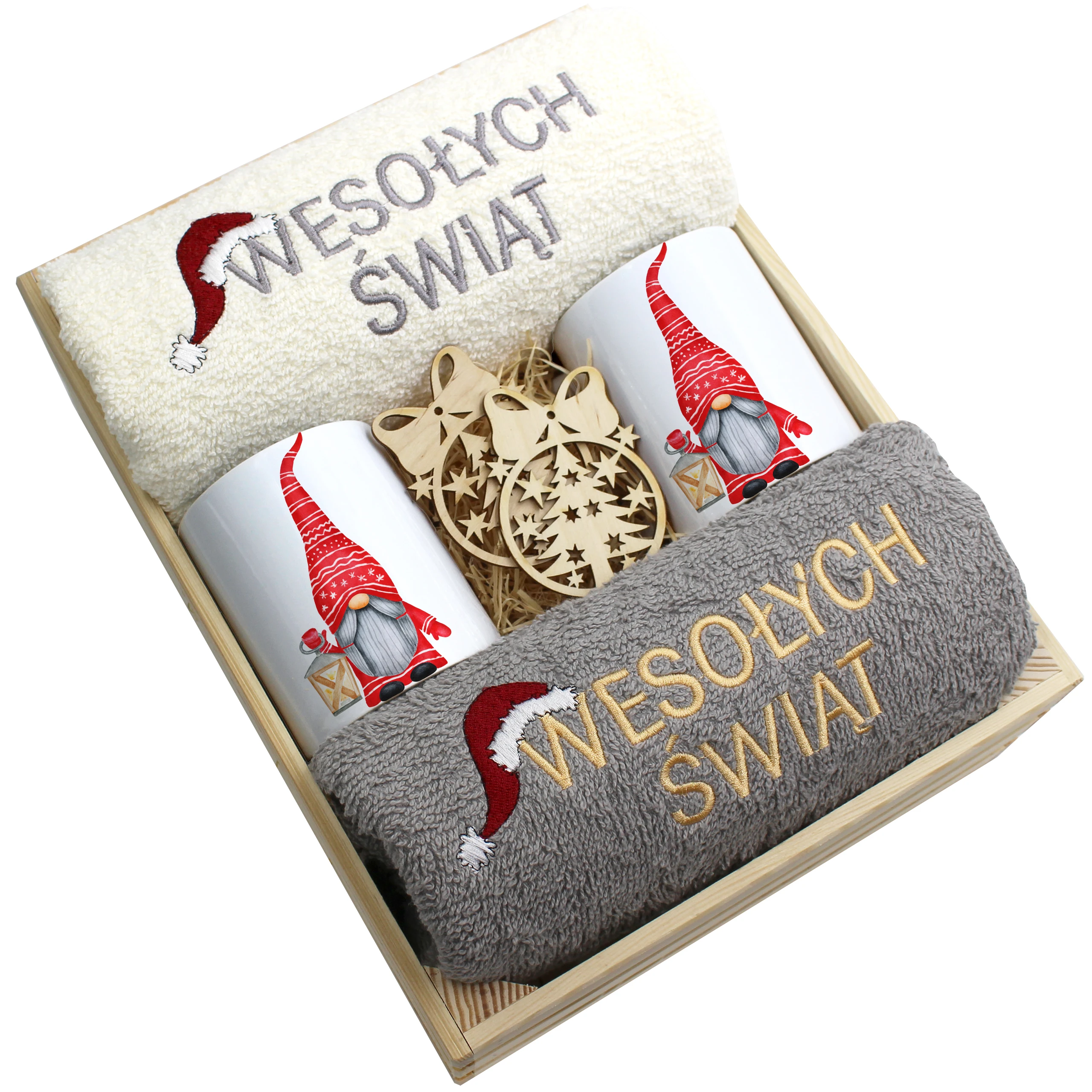 Każdy zestaw ręczników wraz z kubkami jest zapakowany w folię - celofan - zestaw tworzy gotowy prezent do podarowania bez potrzeby dalszego pakowania.