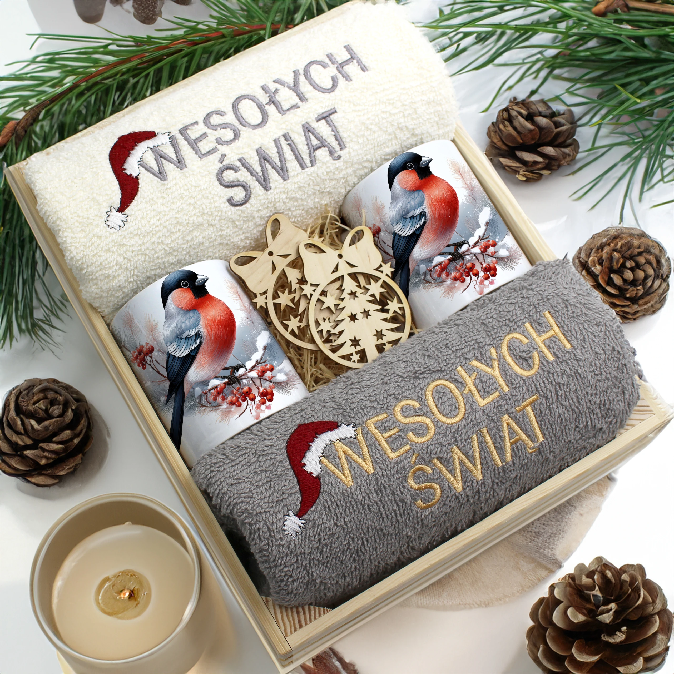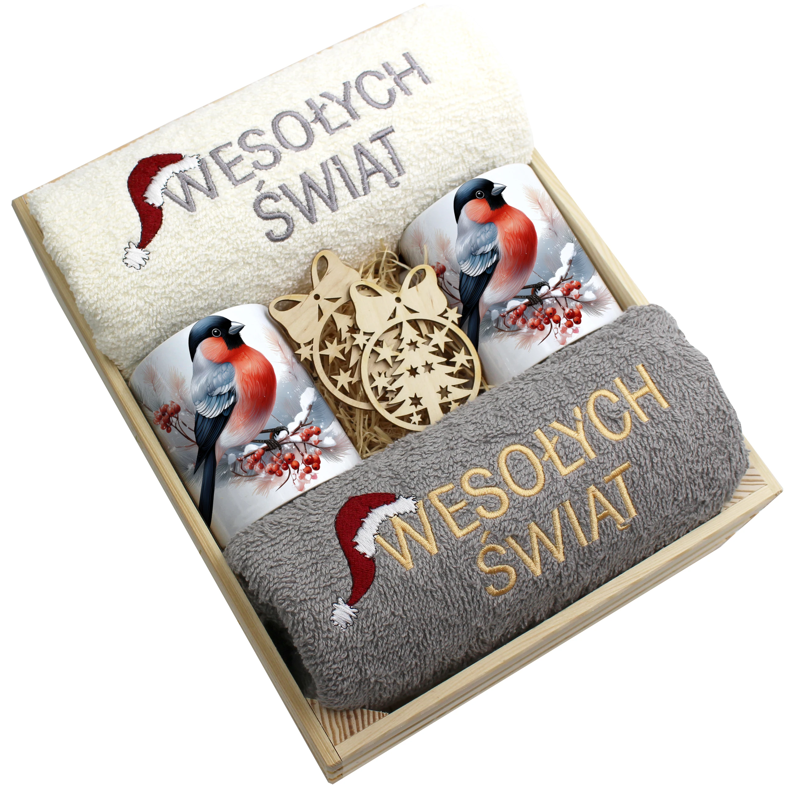 Każdy zestaw ręczników wraz z kubkami jest zapakowany w folię - celofan - zestaw tworzy gotowy prezent do podarowania bez potrzeby dalszego pakowania.
