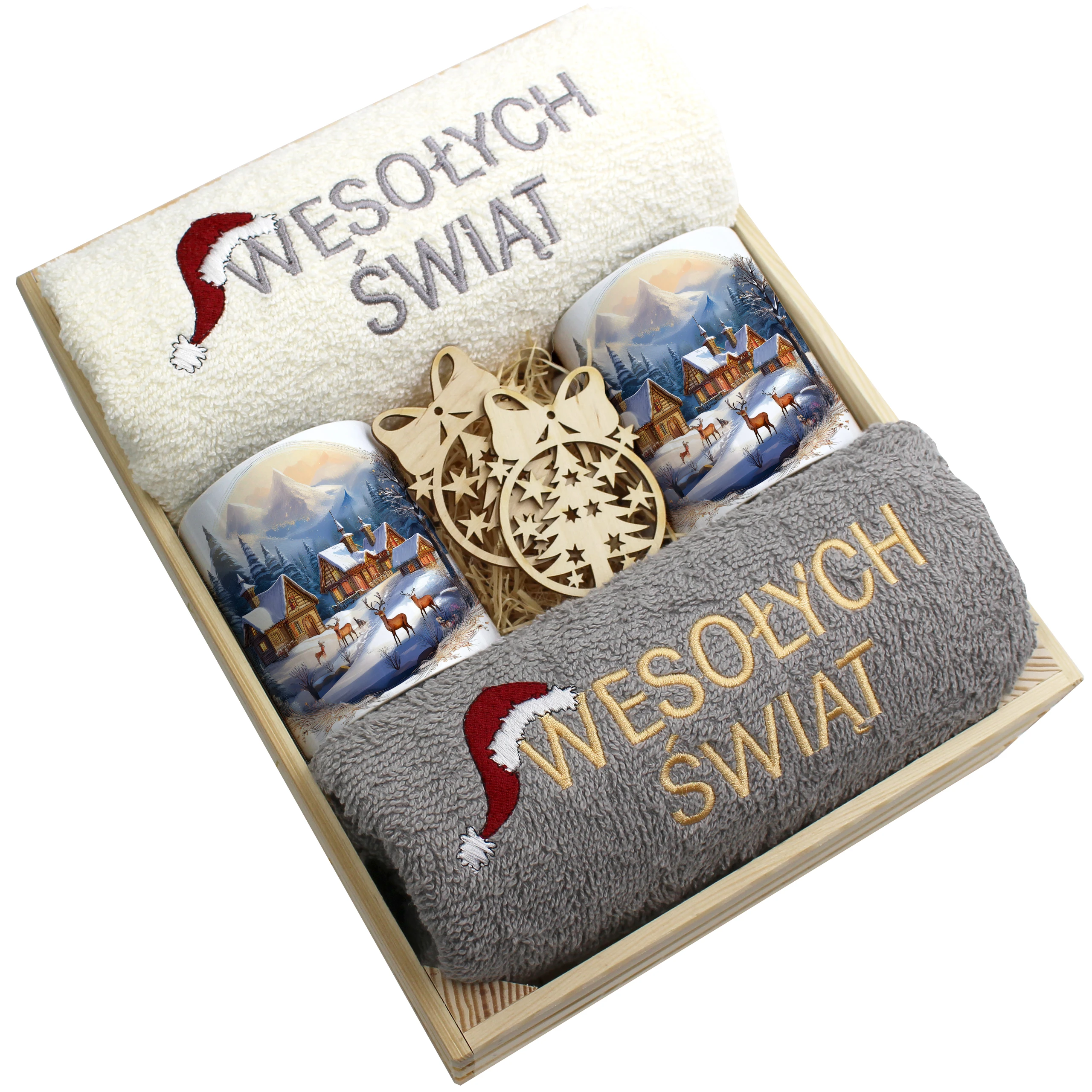Każdy zestaw ręczników wraz z kubkami jest zapakowany w folię - celofan - zestaw tworzy gotowy prezent do podarowania bez potrzeby dalszego pakowania.