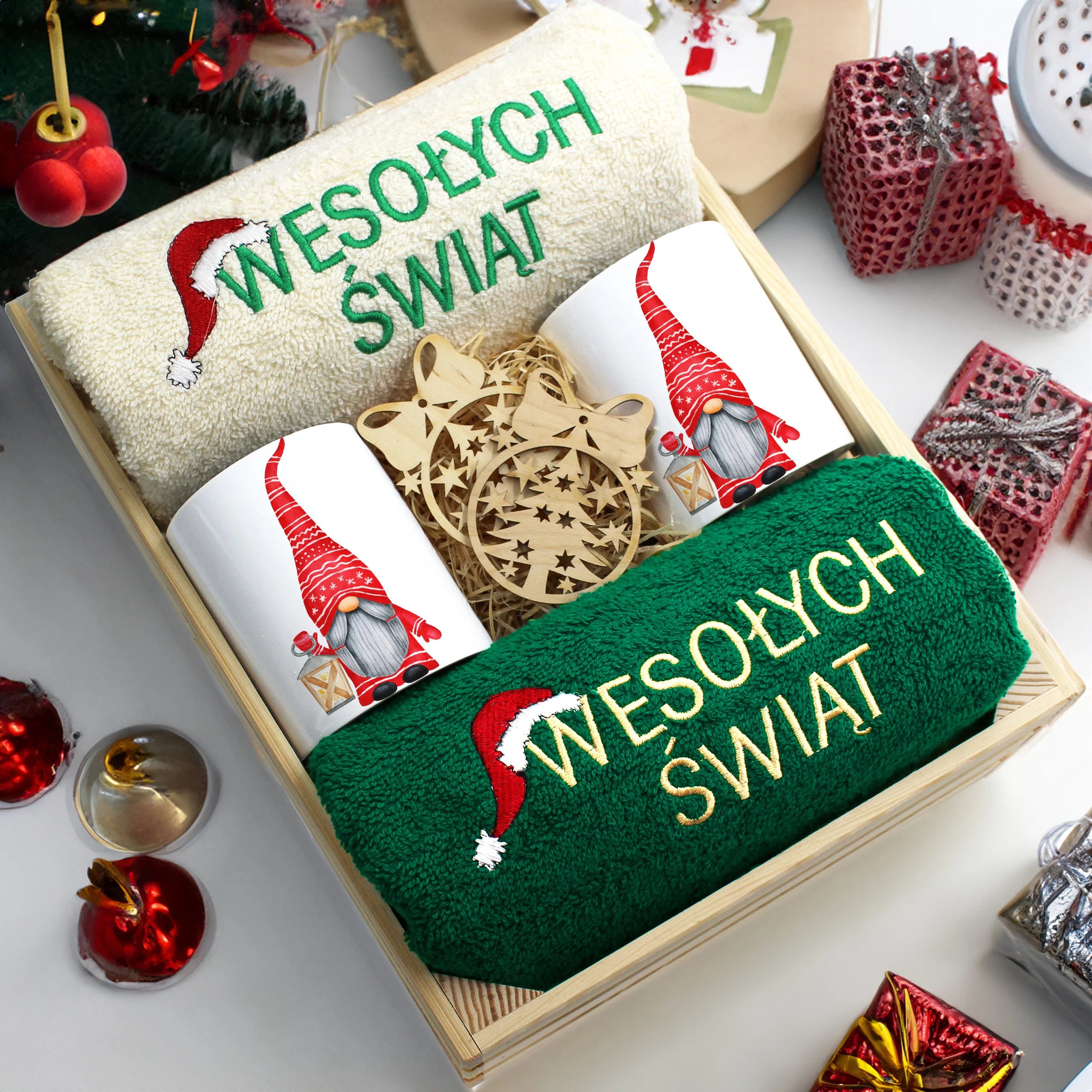Każdy zestaw ręczników wraz z kubkami jest zapakowany w folię - celofan - zestaw tworzy gotowy prezent do podarowania bez potrzeby dalszego pakowania.